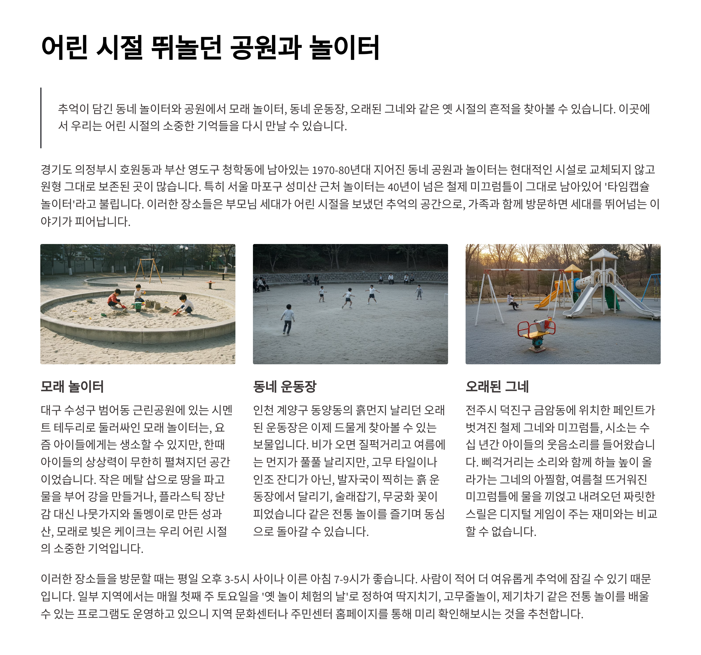 어린 시절 뛰놀던 공원과 놀이터