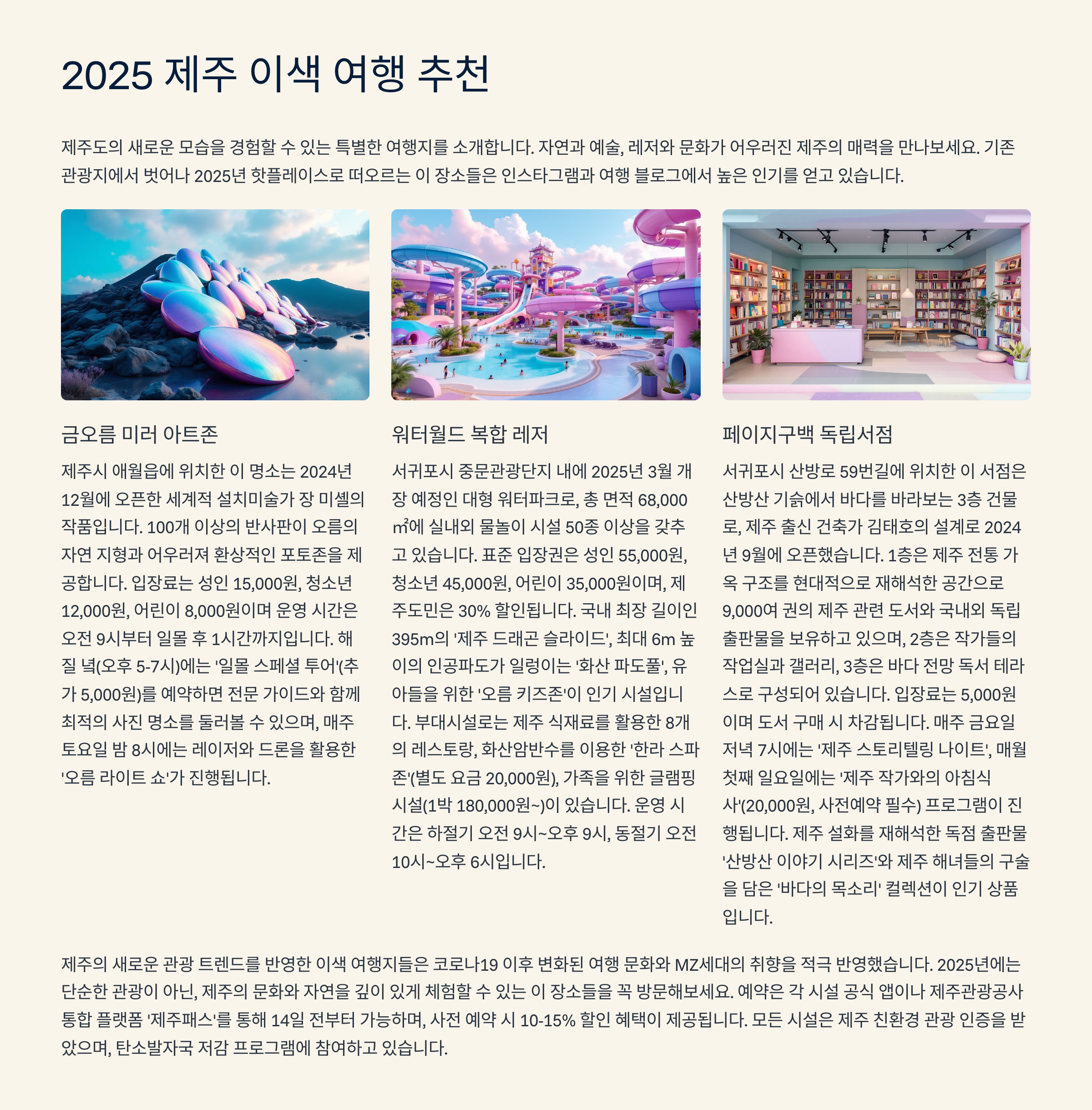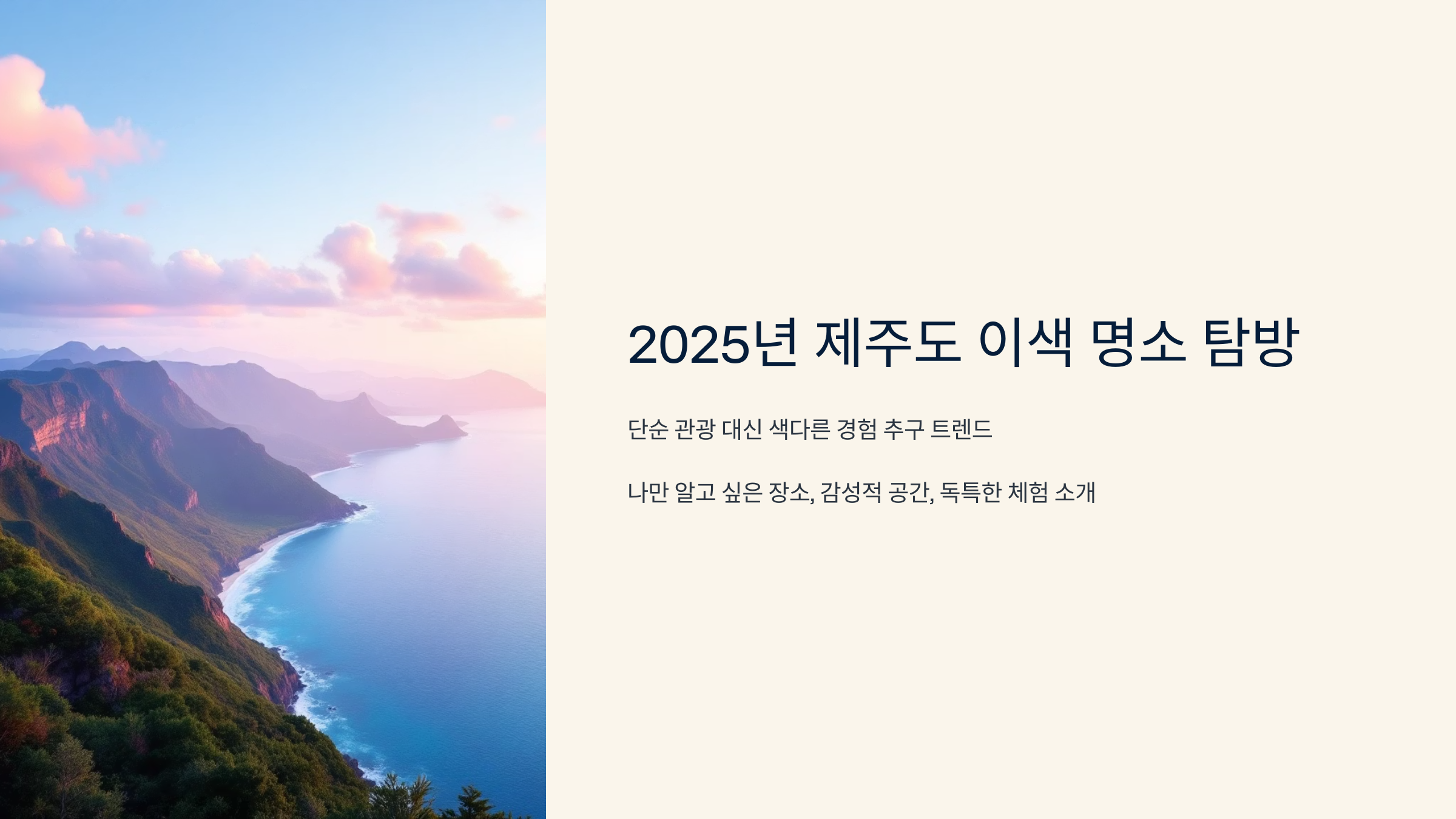 제주도는 매년 수많은 여행자들이 찾는 대한민국 대표 관광지이지만, 최근에는 단순한 자연경관보다 색다른 경험을 추구하는 트렌드가 강해지고 있습니다.