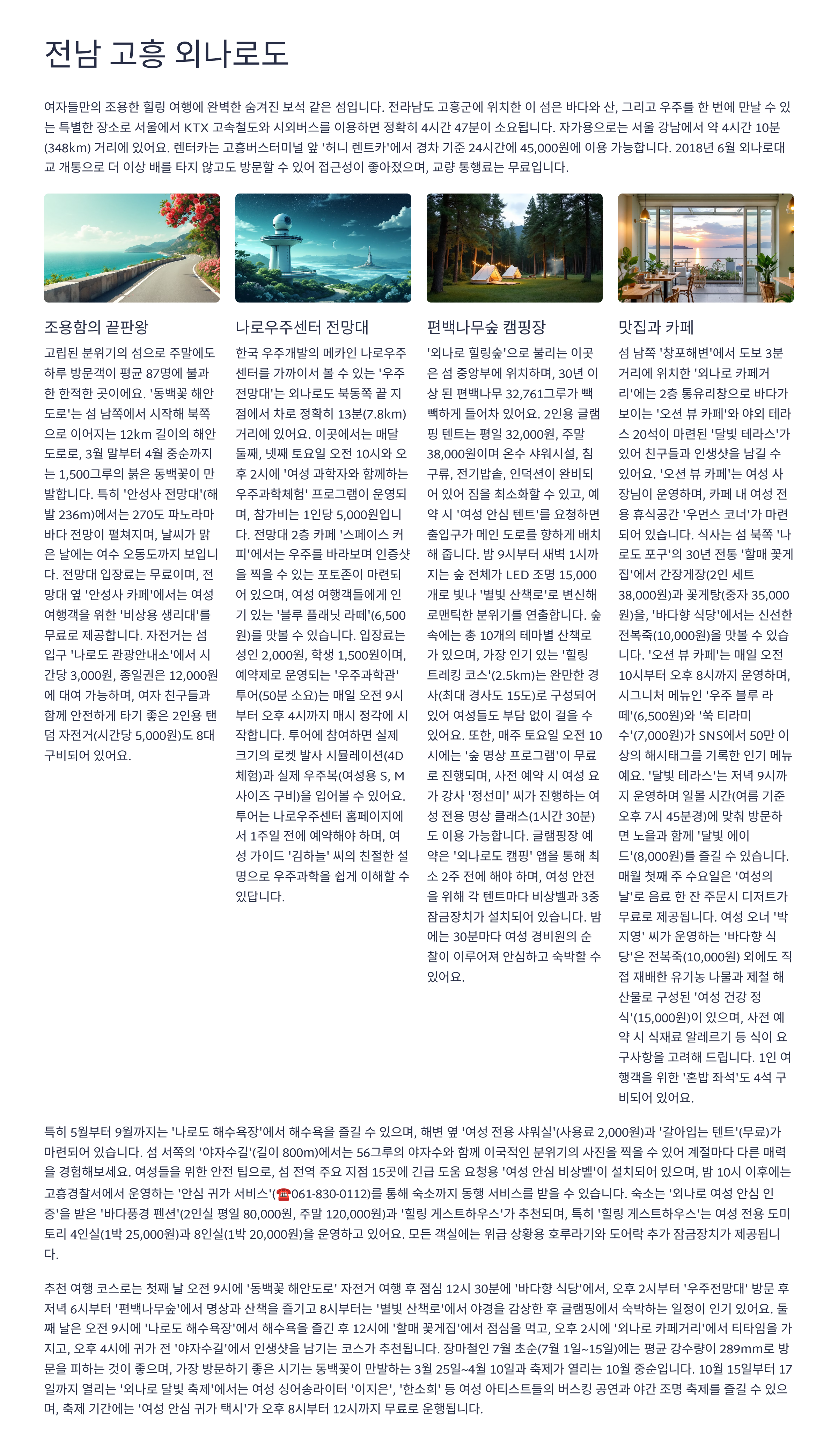 - 5. 전남 고흥 외나로도 – 조용한 해안선의 섬