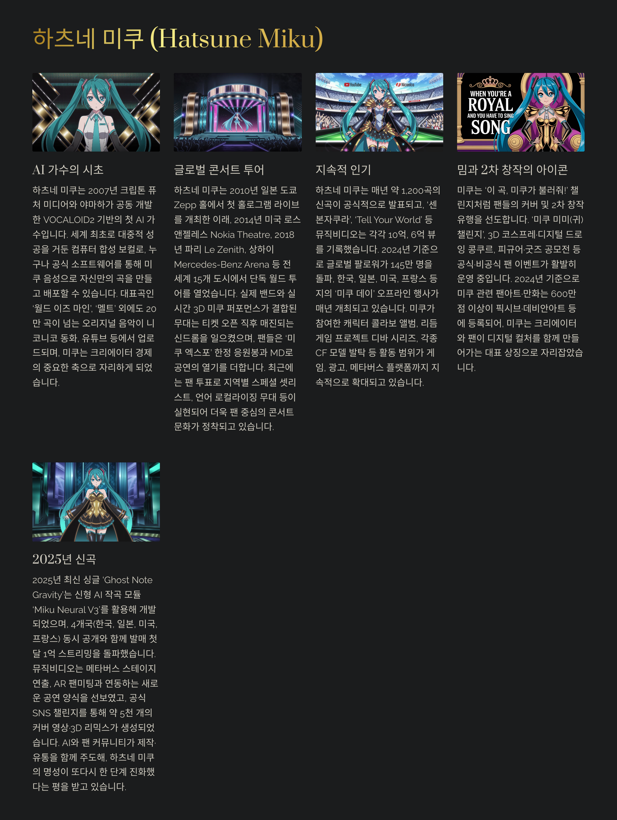 하츠네 미쿠, 한유아처럼 AI 가수도 가상 무대에서 팬들과 소통하는 시대입니다.
