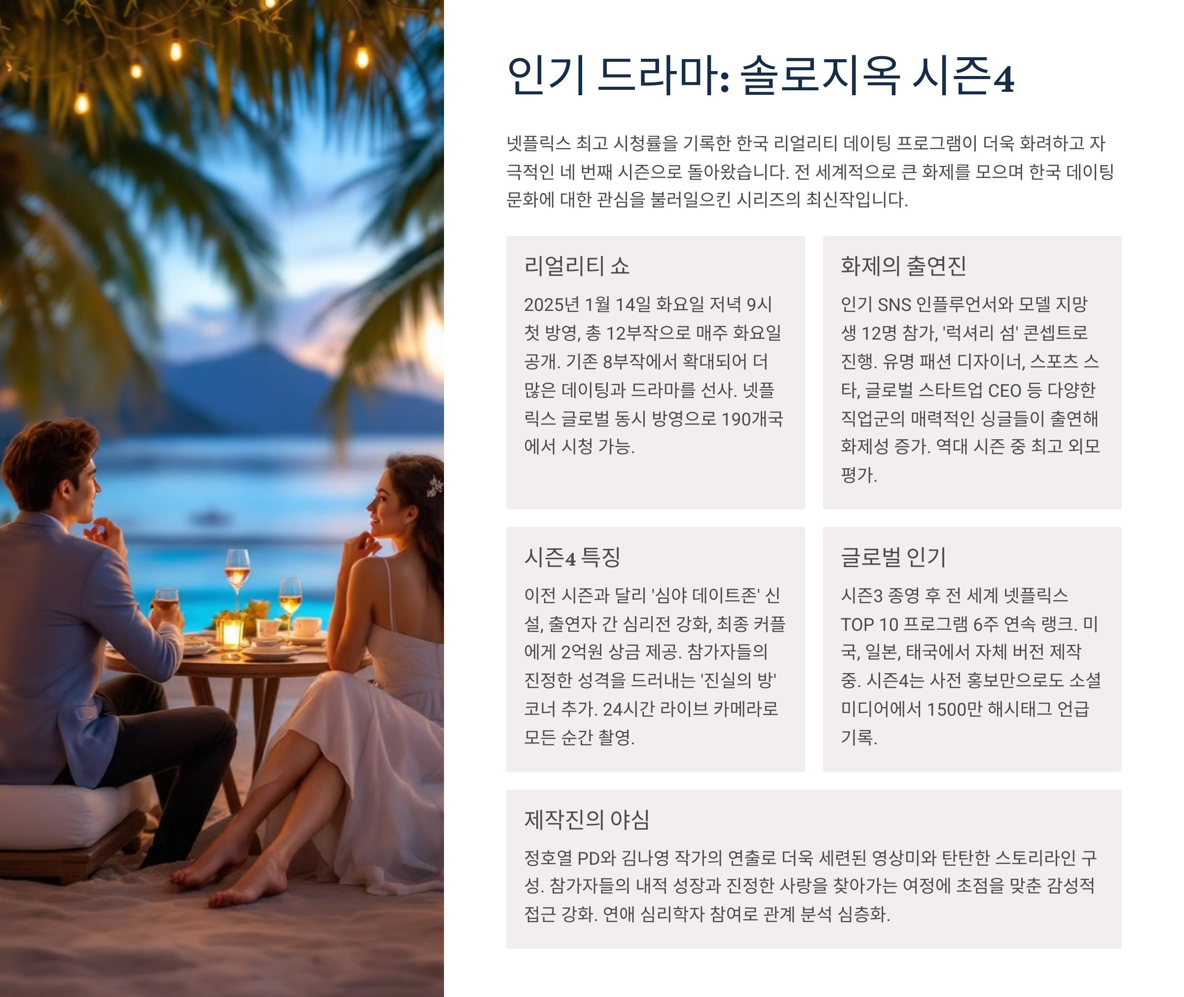 2025년, 넷플릭스는 다양한 장르의 드라마를 선보이며 시청자들의 마음을 사로잡았습니다. 그중에서도 특히 주목받은 작품들을 소개합니다.