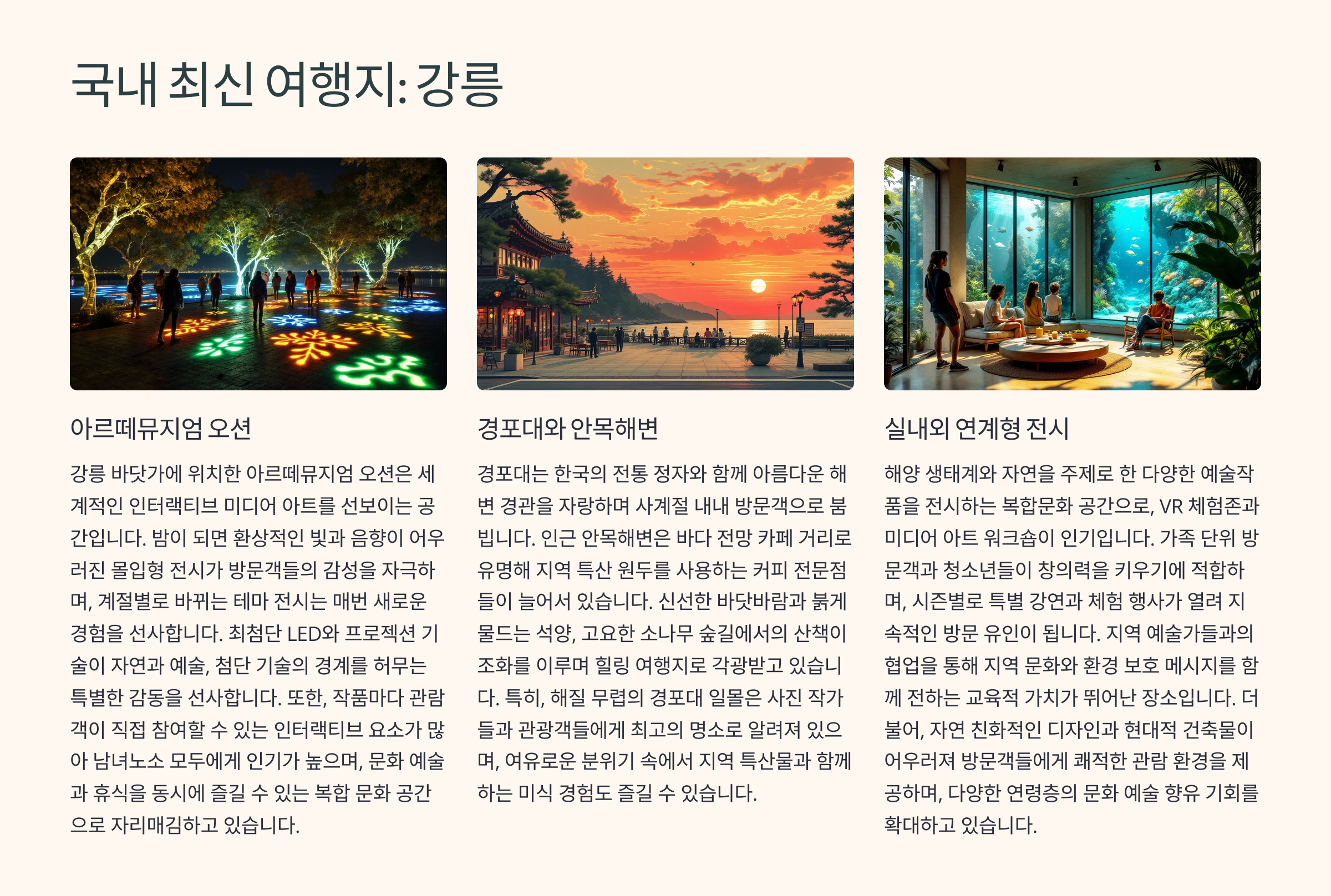 - 추천 코스: 경포대 산책 → 아르떼뮤지엄 관람 → 안목해변 커피 한잔