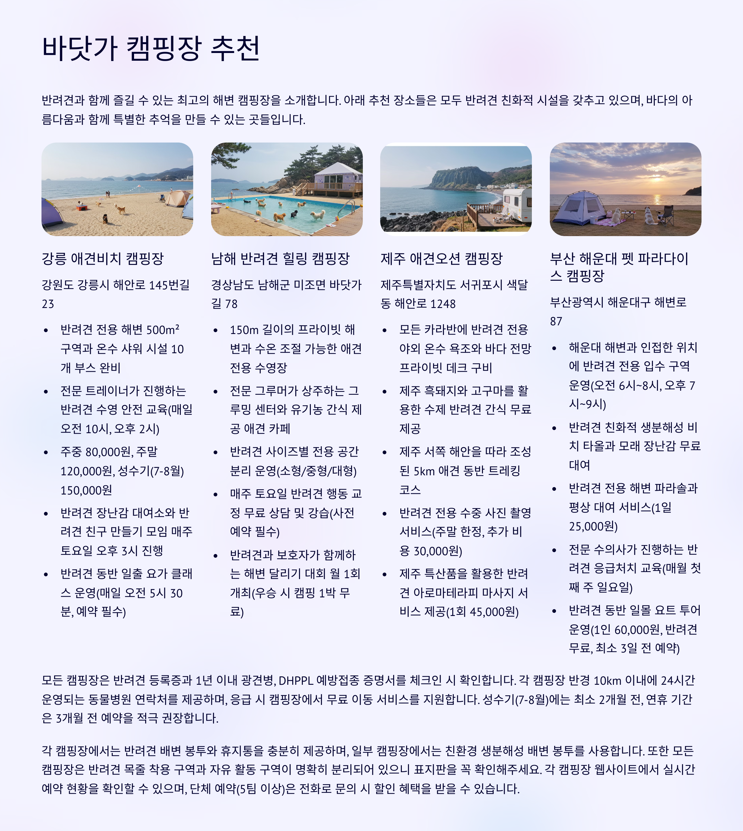 ✨ 2025년 최신 정보로 엄선한 애견 동반 가능 바닷가 & 산 캠핑장을 소개합니다.