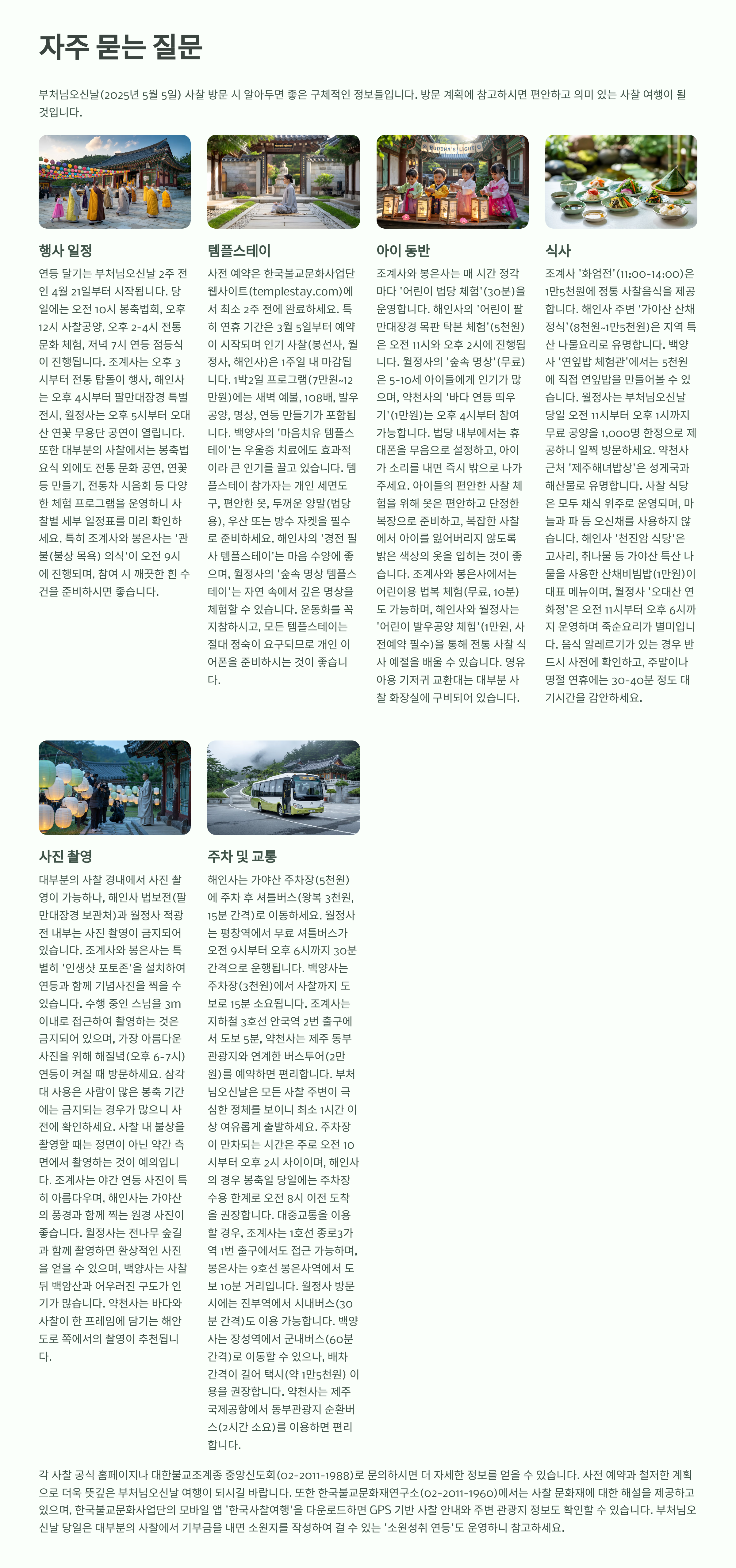 사찰 여행은 단순한 관광이 아닌 마음을 돌아보는 시간이기도 하죠. 아래 리스트를 참고해서 더욱 의미 있는 시간을 보내보세요.