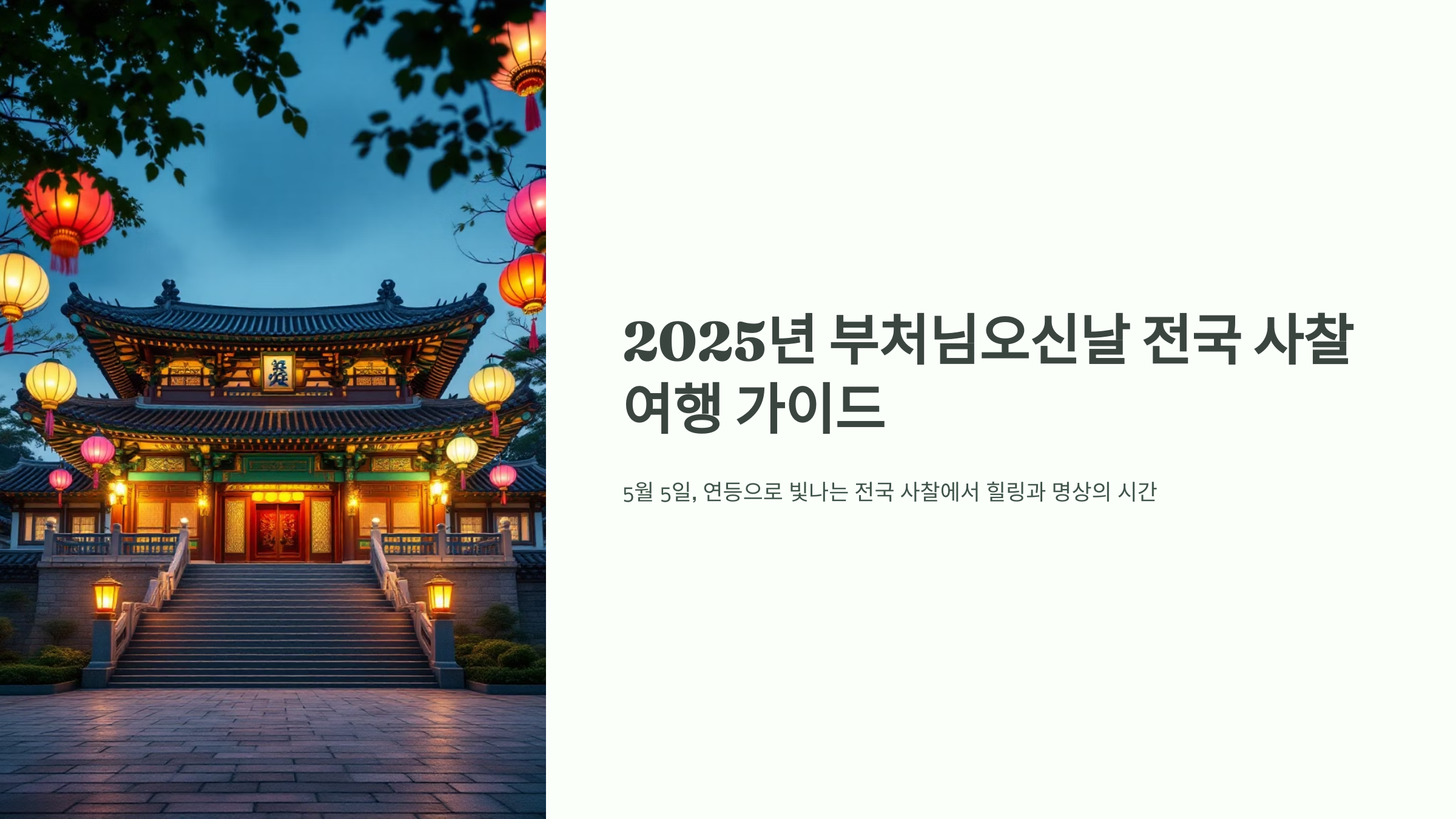 2025년 5월 5일, 부처님 오신 날. 전국 곳곳의 사찰이 연등으로 빛나는 하루, 조용한 명상과 자연 속 힐링이 필요한 분들을 위한 완벽한 여행을 준비해 보세요.