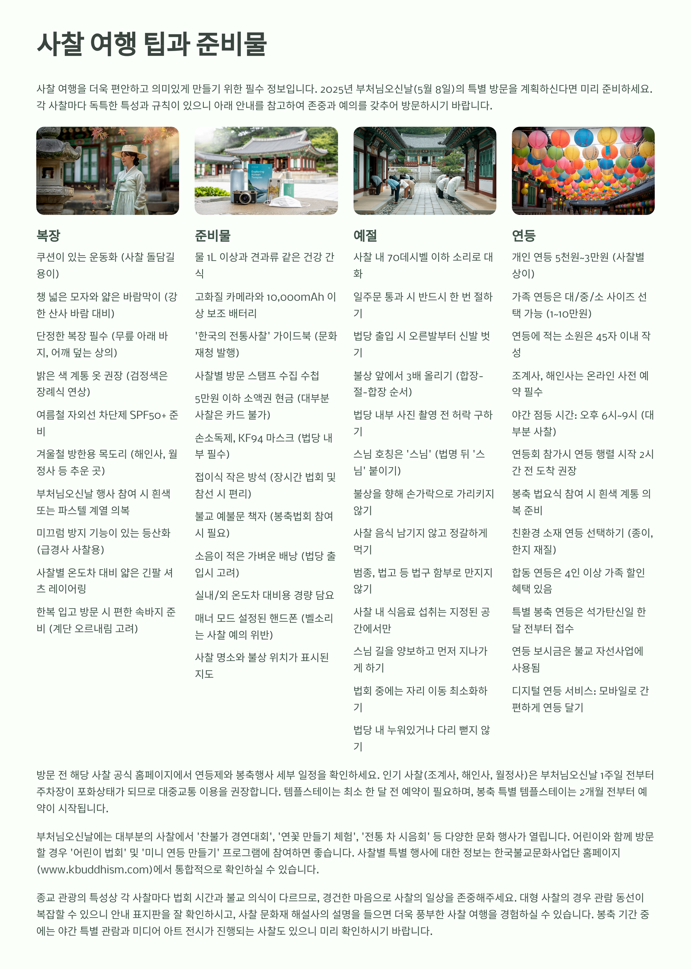 사찰 여행 팁과 준비물 체크리스트