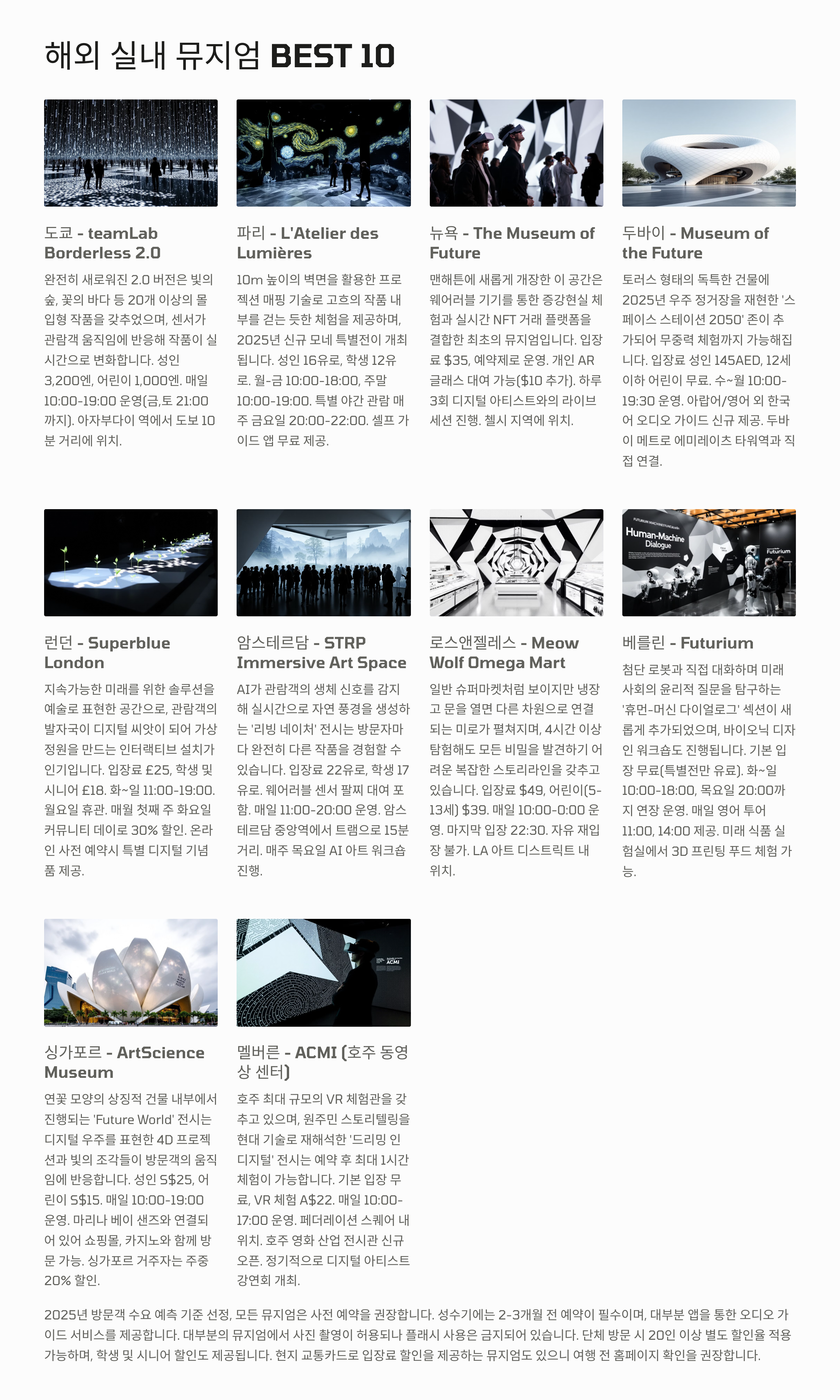 해외 실내 뮤지엄 BEST 10 (신규 & 리뉴얼)