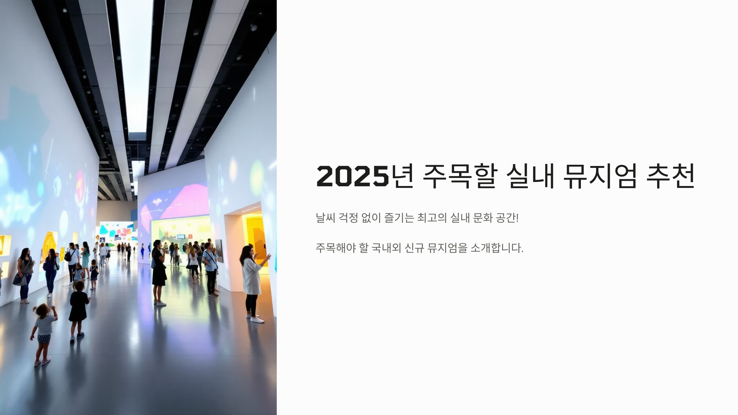 2025년 기준, 한국 곳곳에 새로운 실내 뮤지엄들이 문을 열었어요.