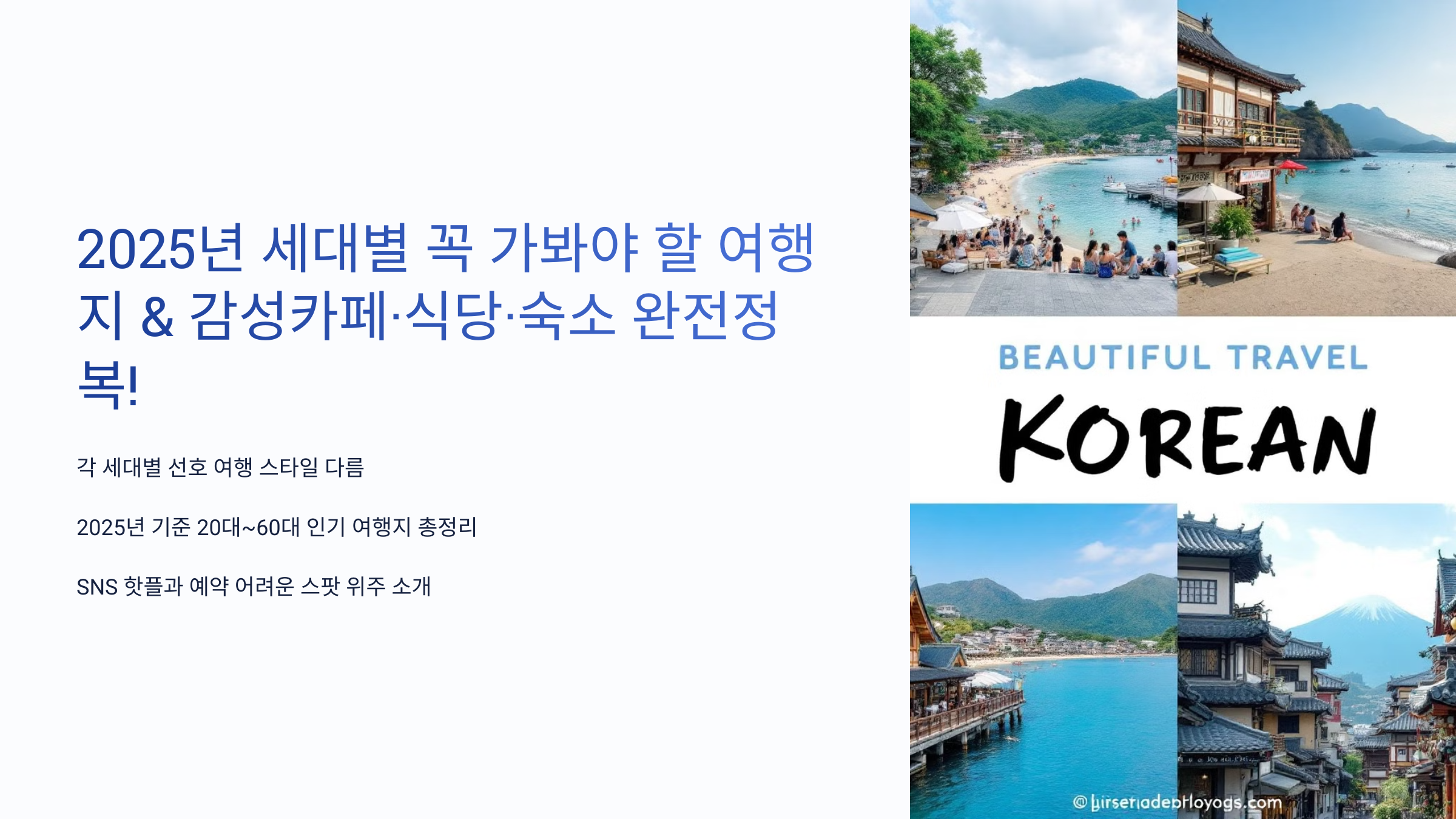 그래서 이번엔 2025년 기준으로 20대부터 60대 이상까지 각 세대별로 꼭 가봐야 할 감성 충만한 여행지와 카페, 식당, 숙소까지 총정리해봤어요!