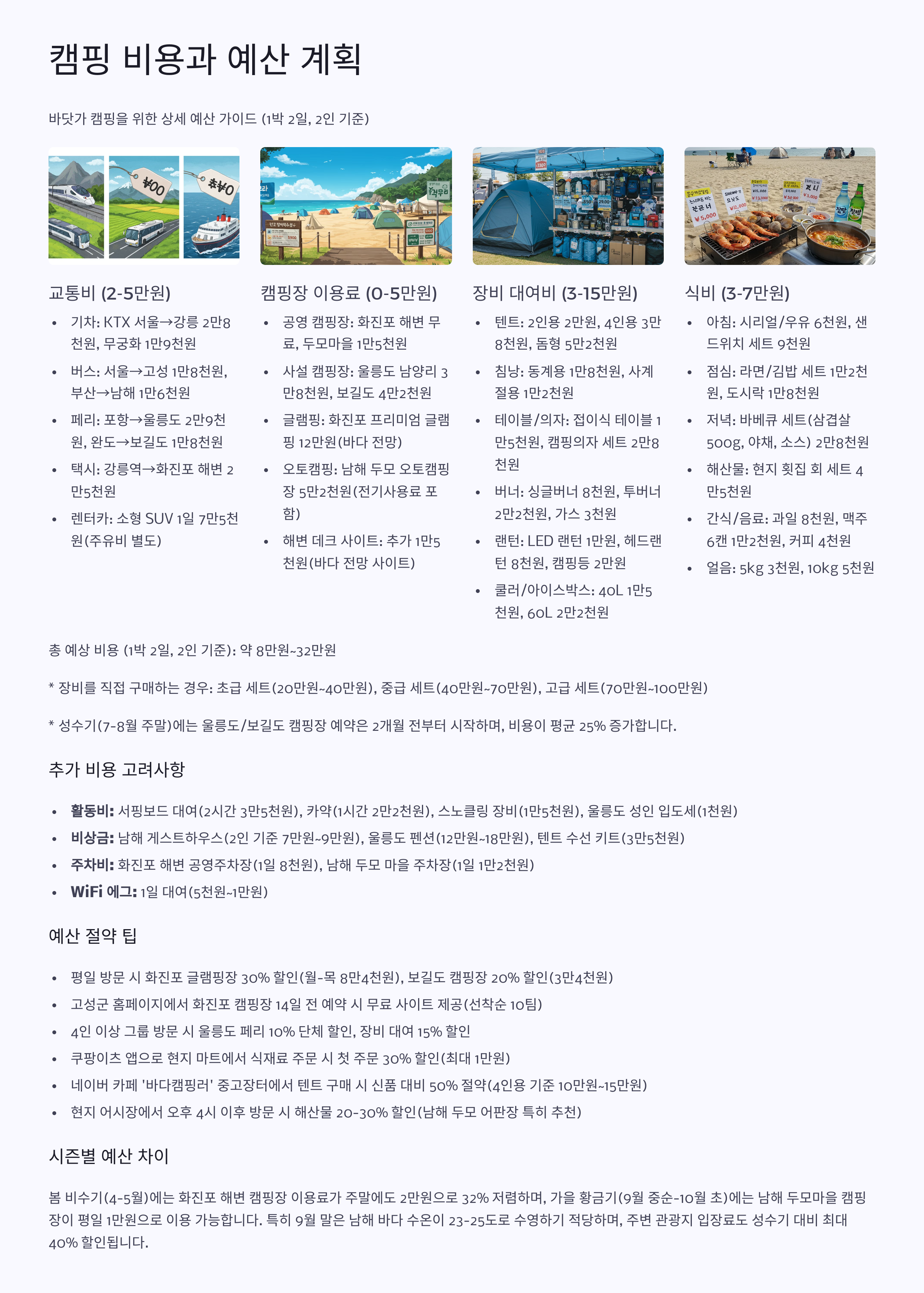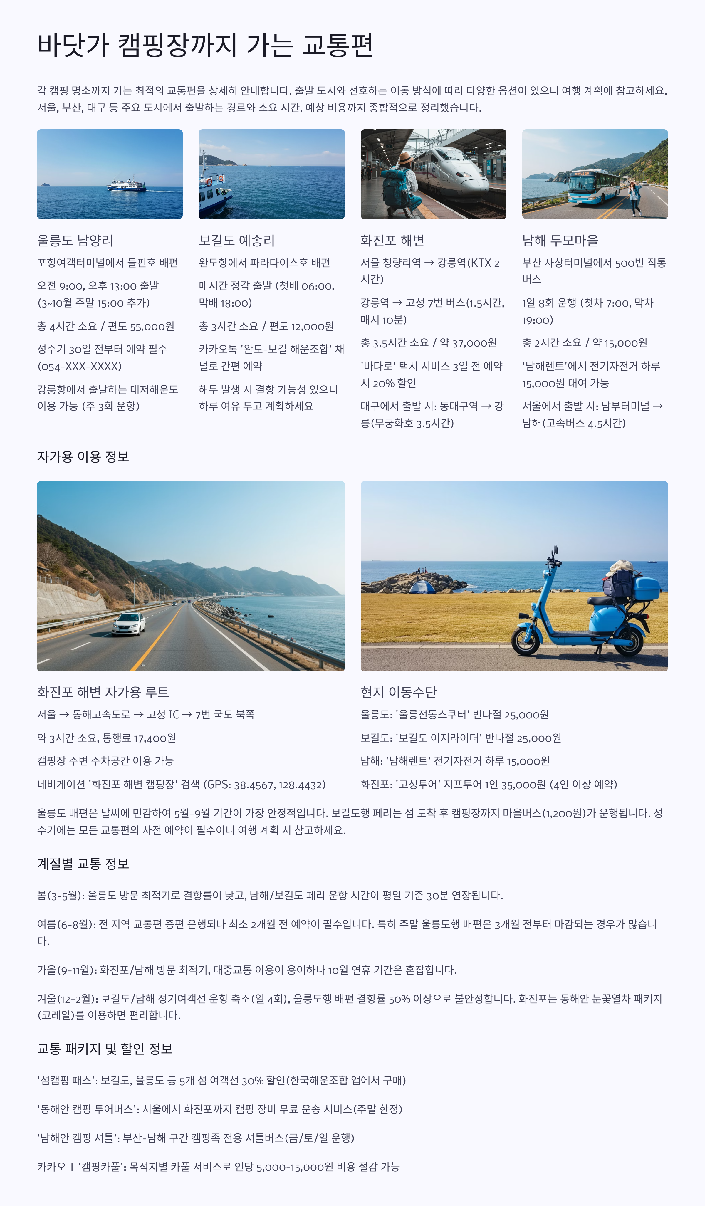 교통편, 비용, 준비 사항까지 상세히 알려드릴 테니, 떠나기 전 꼼꼼히 체크하고 완벽한 캠핑을 준비해보세요!