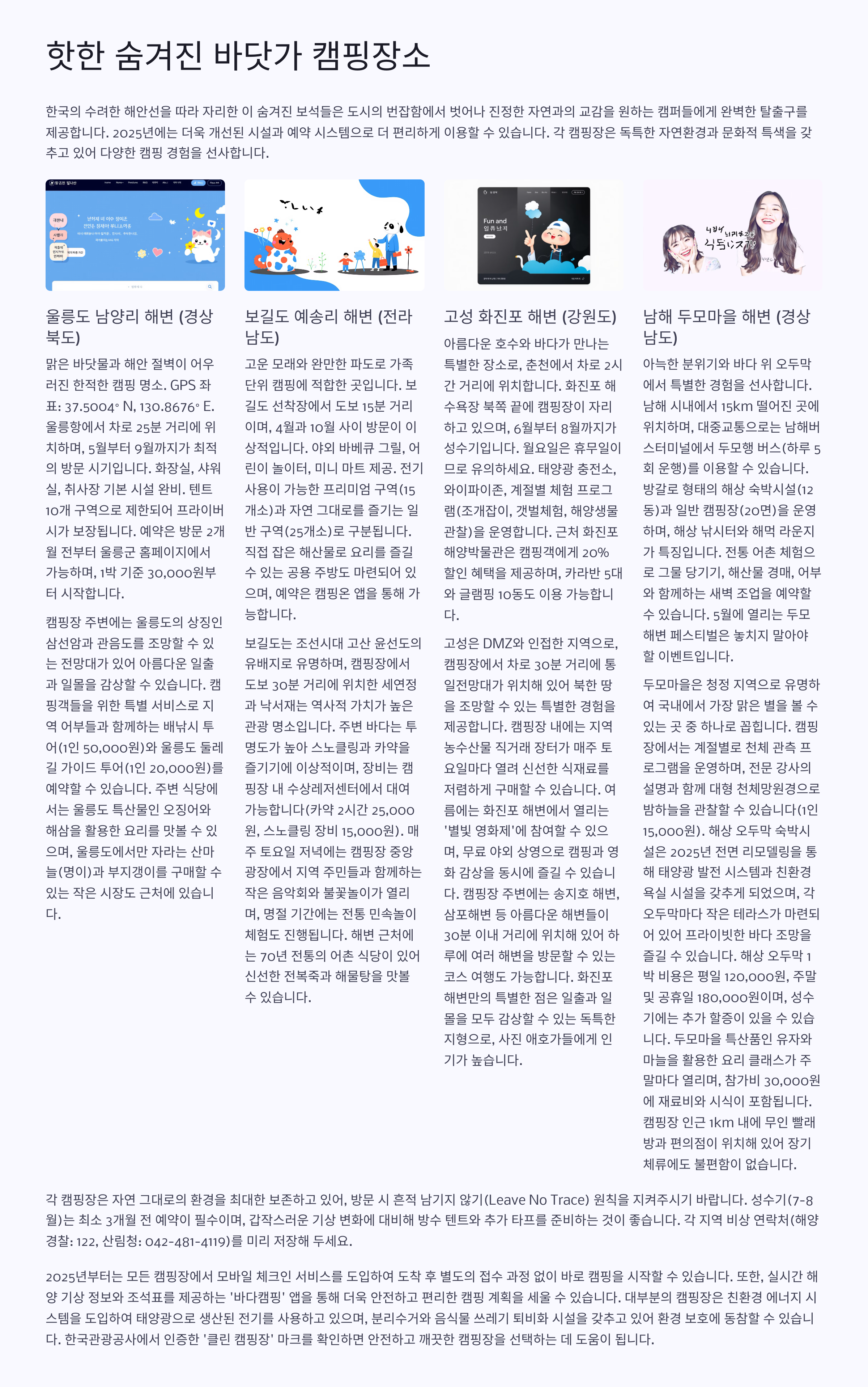 2025년 핫한 숨겨진 바닷가 캠핑장소
