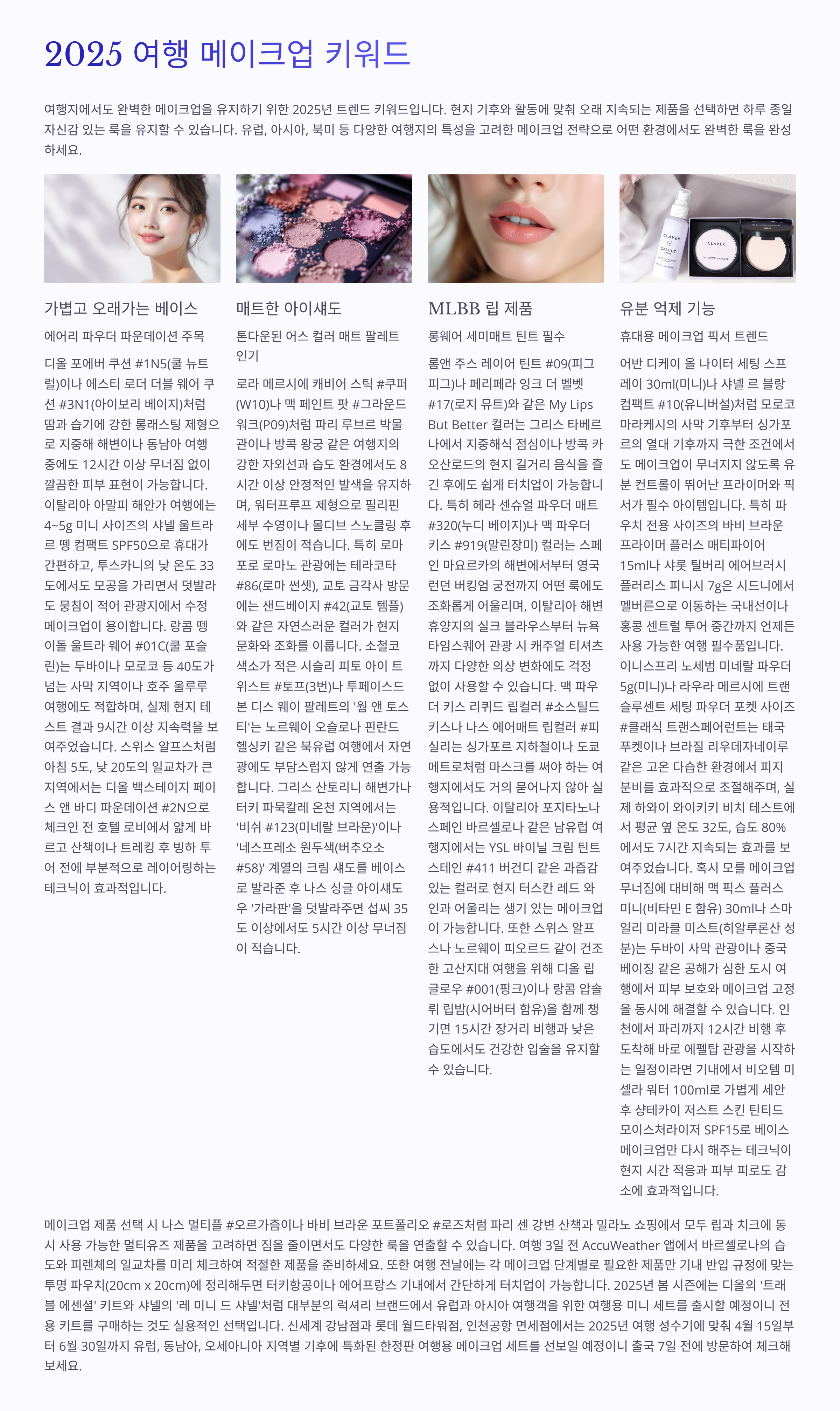 2025 여행 메이크업에 가장 중요한 요소는 무엇인가요?