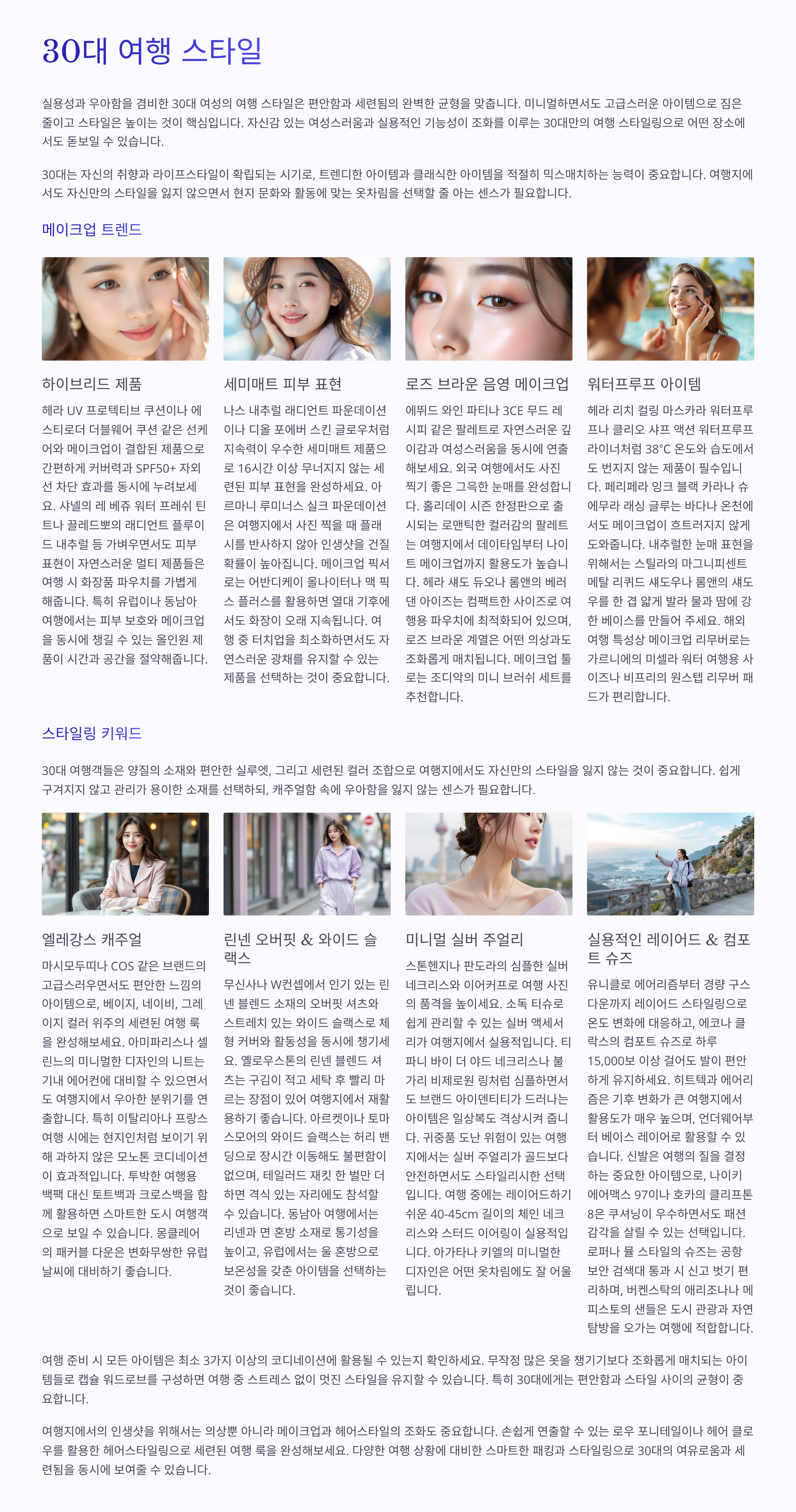 30대 여성 여행 메이크업 & 스타일링 트렌드