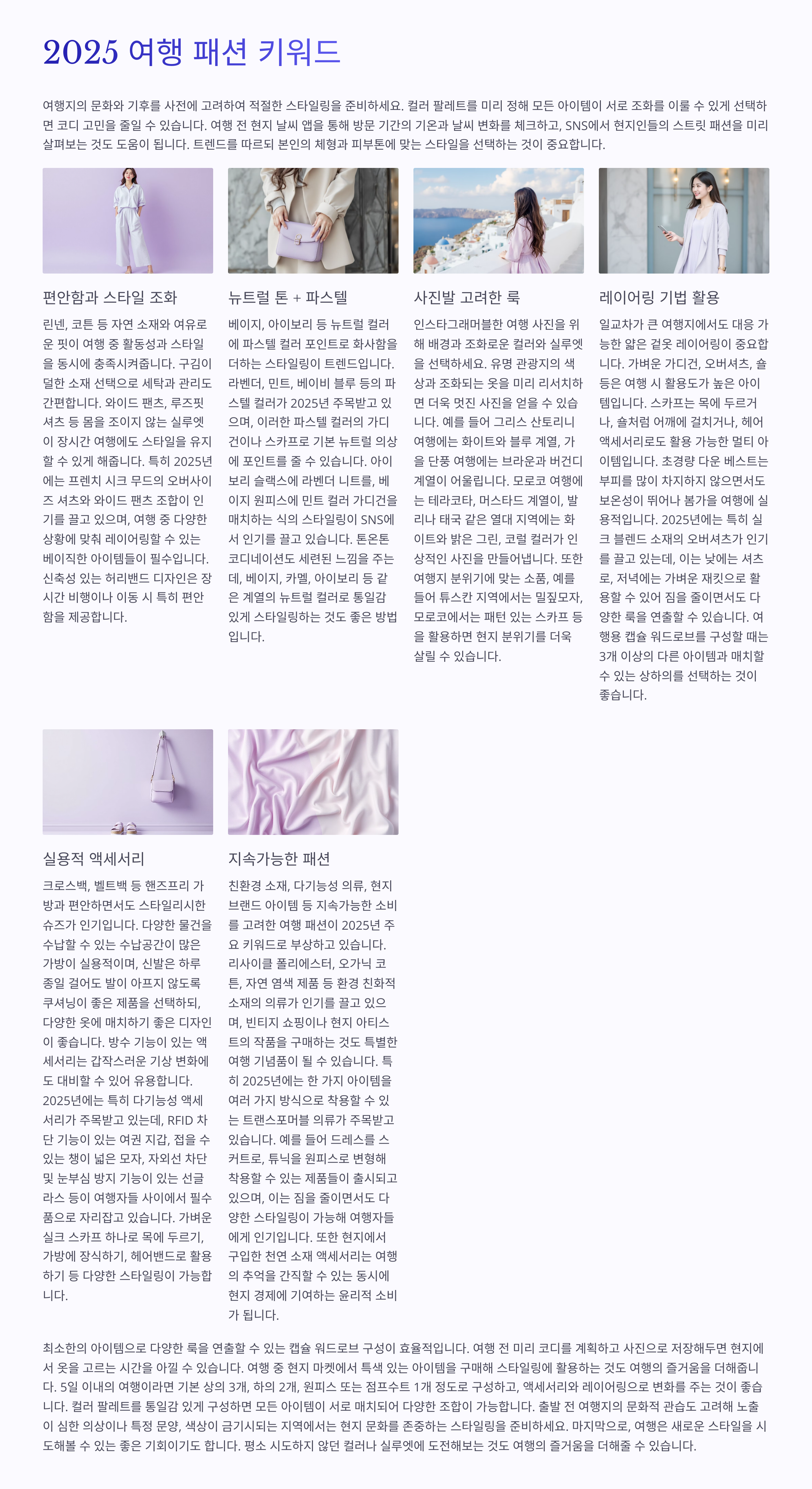 2025년 여행지에서 가장 많이 보일 패션은 '편안함과 스타일의 조화'예요.