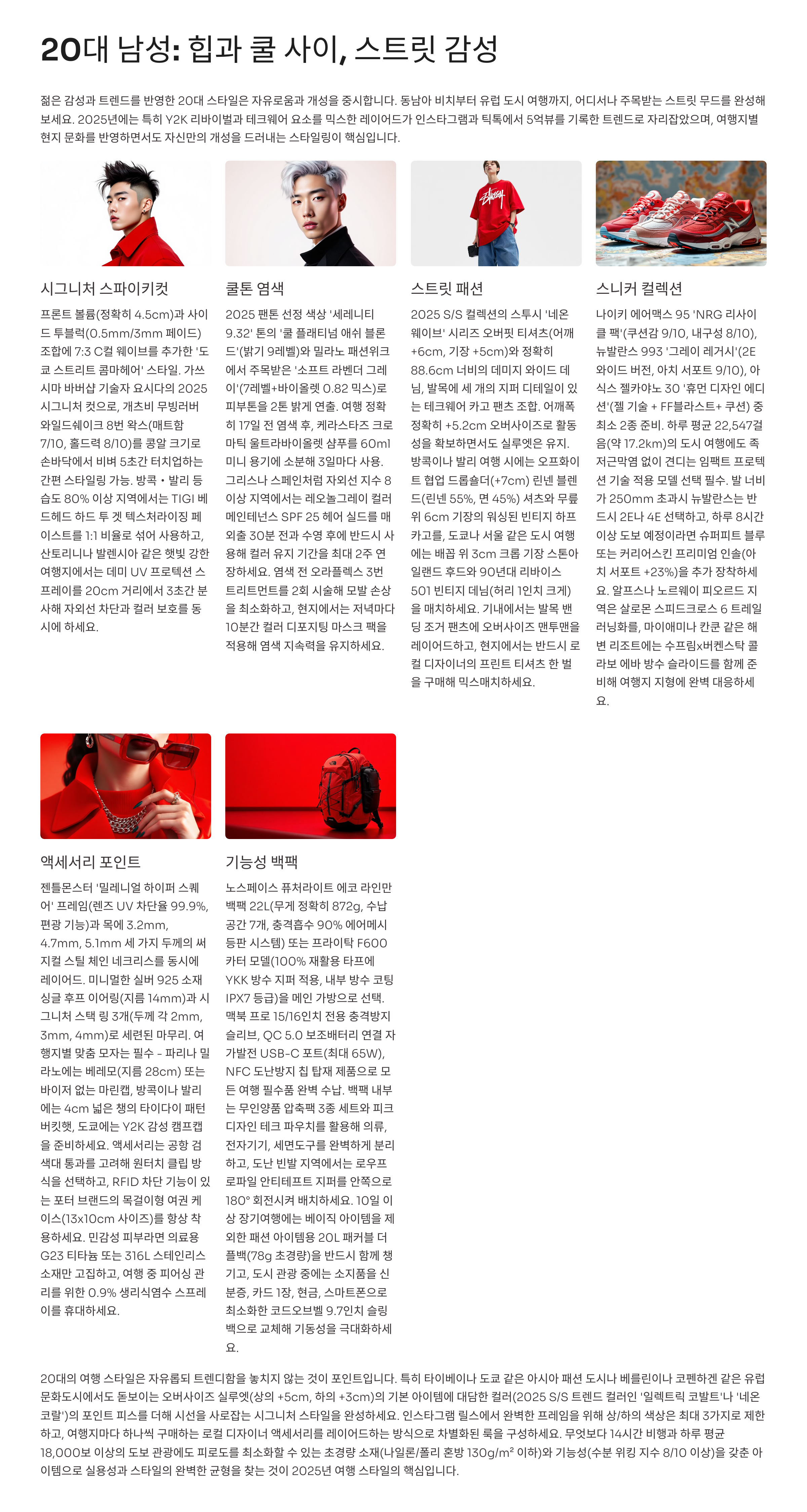 2025년 20대 남성들 사이에서는 스트릿 무드와 Y2K 감성이 여전히 유효해요.