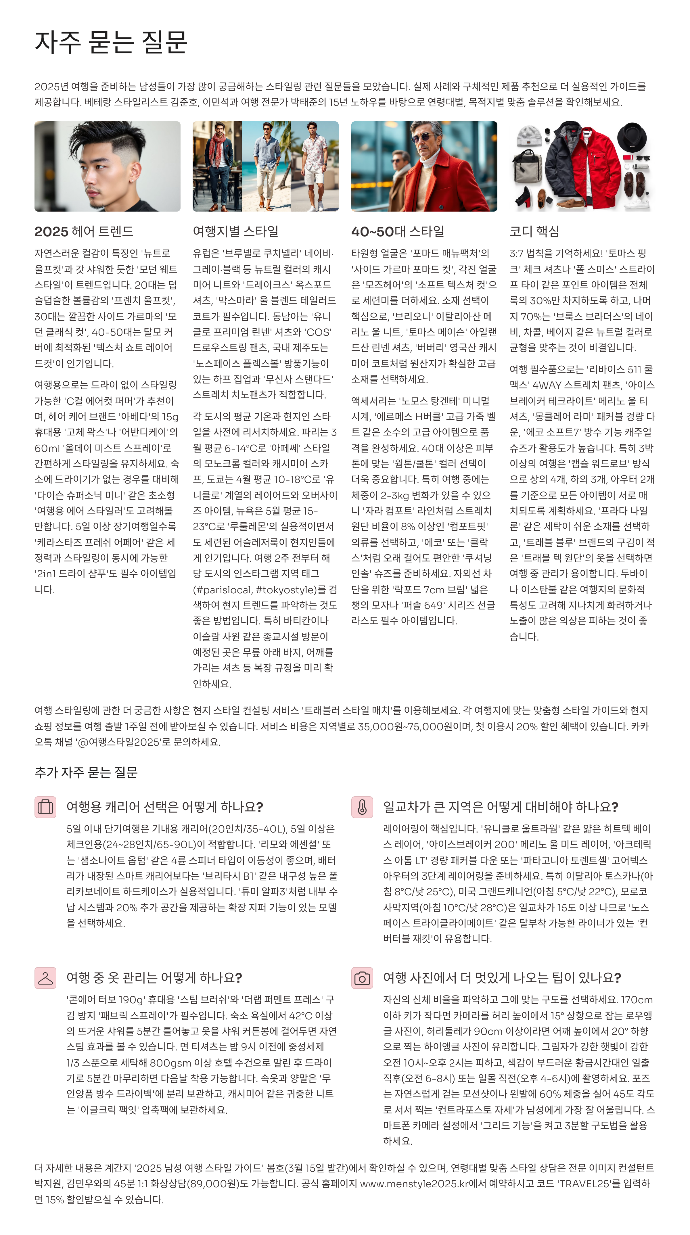 2025년 여행 준비: 남성 연령대별 핫한 헤어스타일과 최신 여행룩 제안