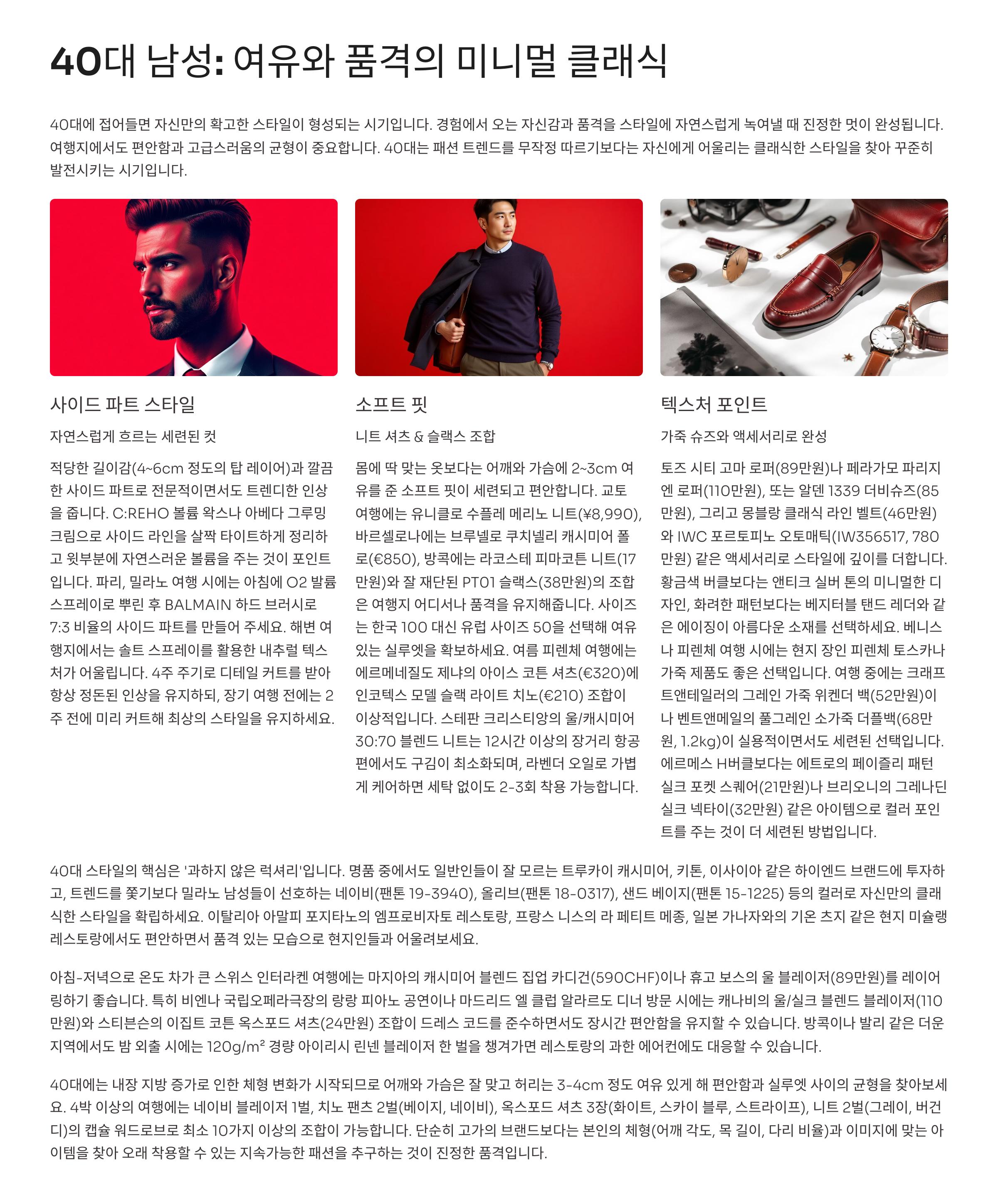 40대 남성: 여유와 품격을 담은 미니멀 클래식