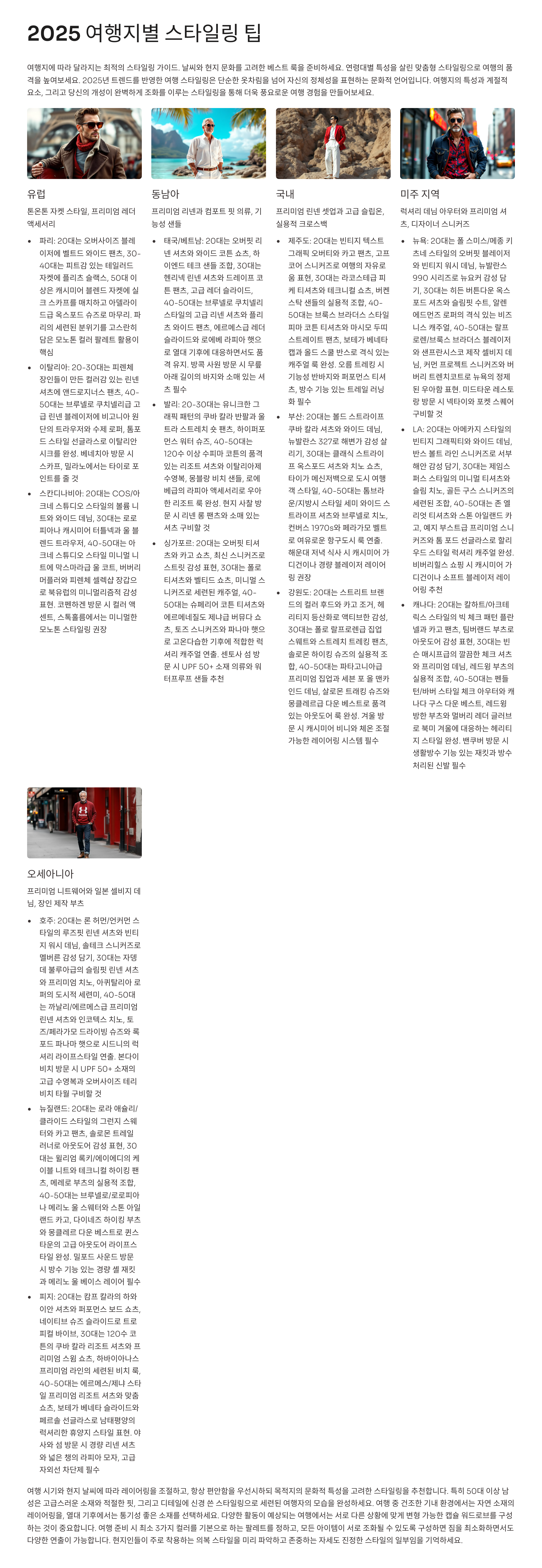 2025 여행지별 스타일링 팁 (유럽/동남아/국내)