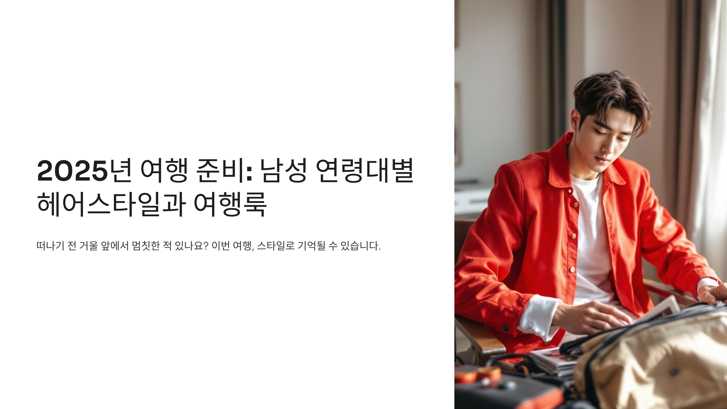 그런데 그거 아세요? 스타일만 바꿨을 뿐인데, 여행이 진짜 달라졌어요. 오늘은 남자분들 20대부터 50대 이상 남성까지, 연령별로 가장 '핫한' 헤어스타일과 '최신 여행 패션룩'을 소개해 드릴게요.