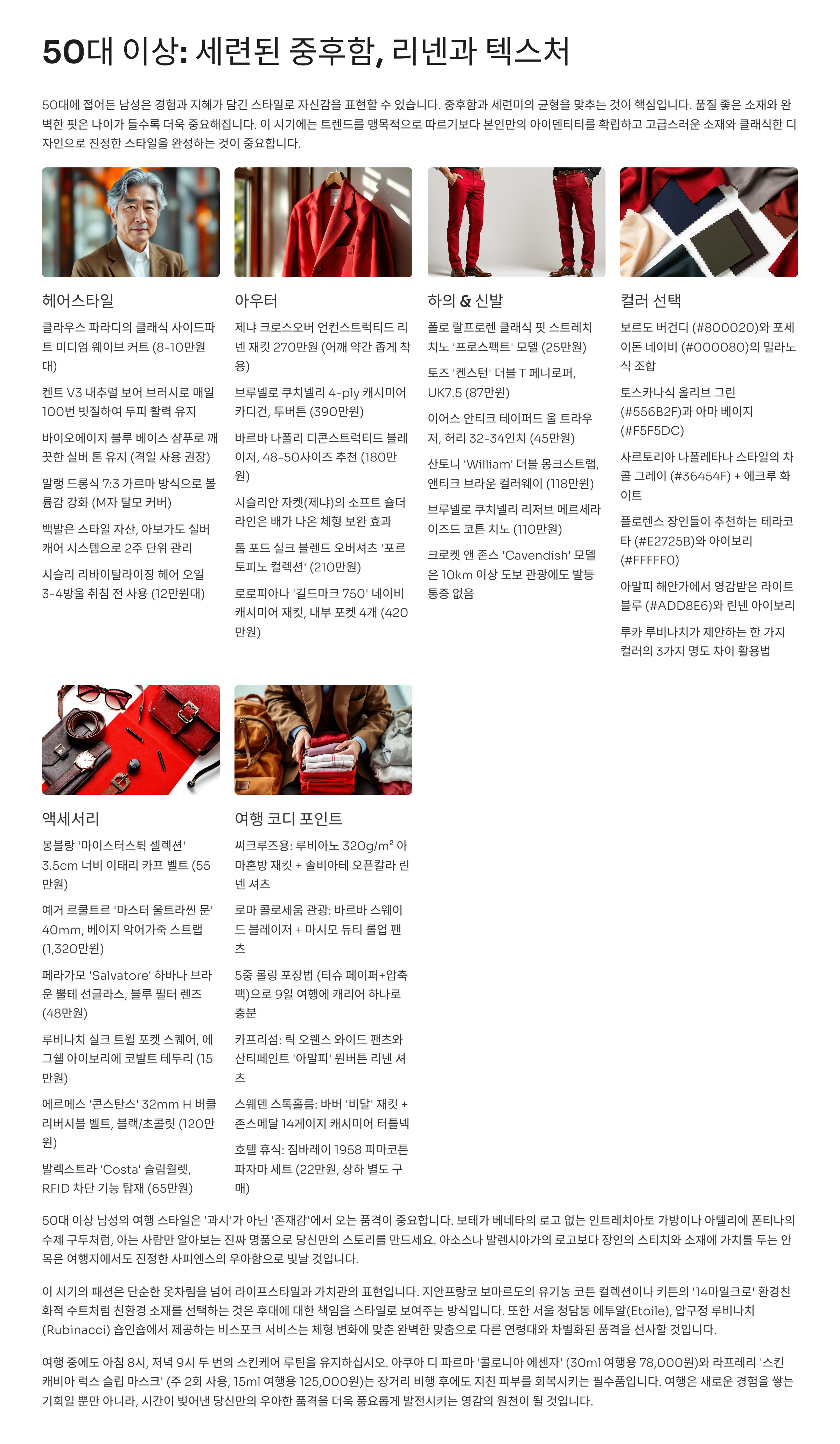 50대 이상: 세련된 중후함, 리넨과 텍스처의 조화