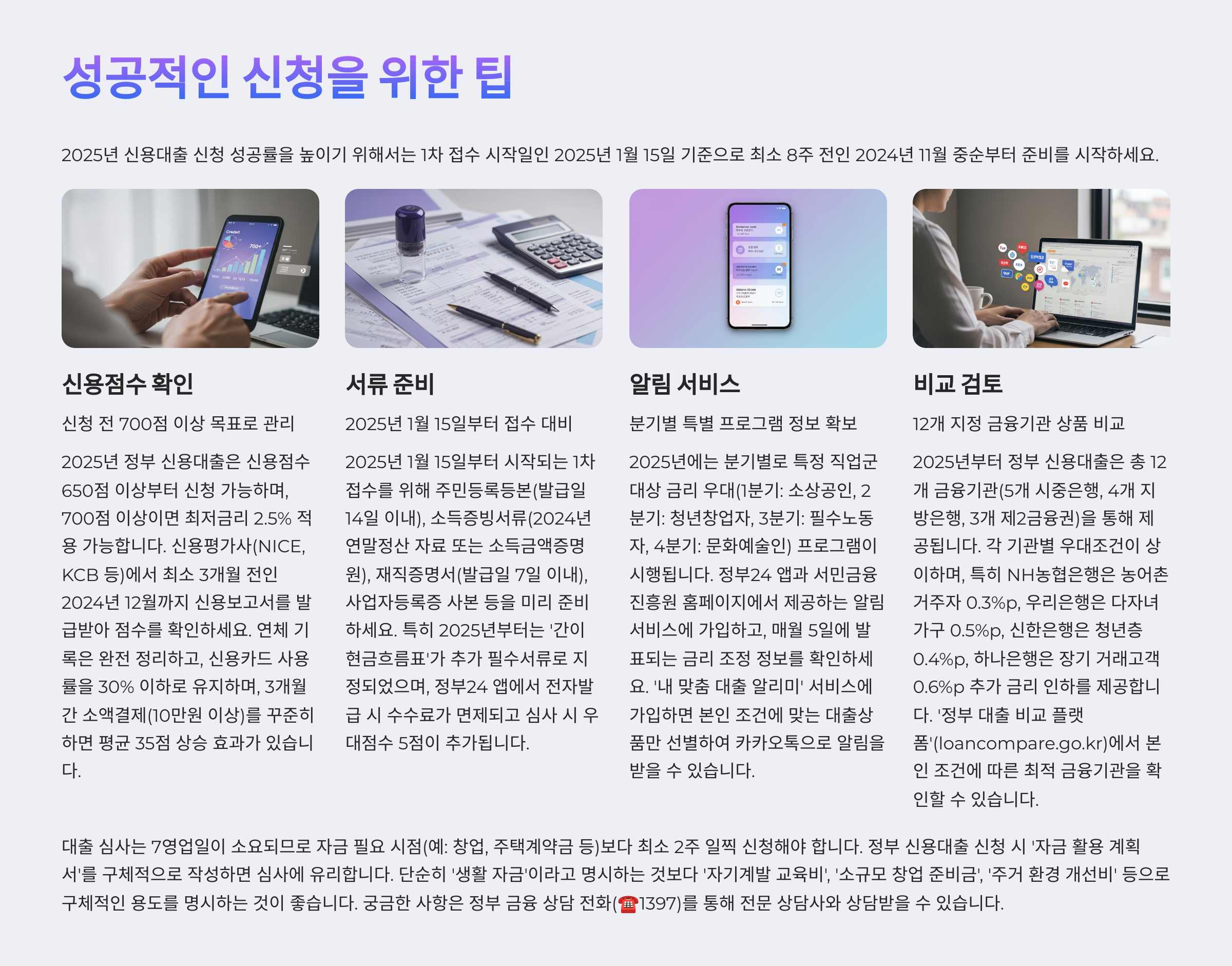 - 대출 전 본인의 신용점수 확인 후 전략 수립