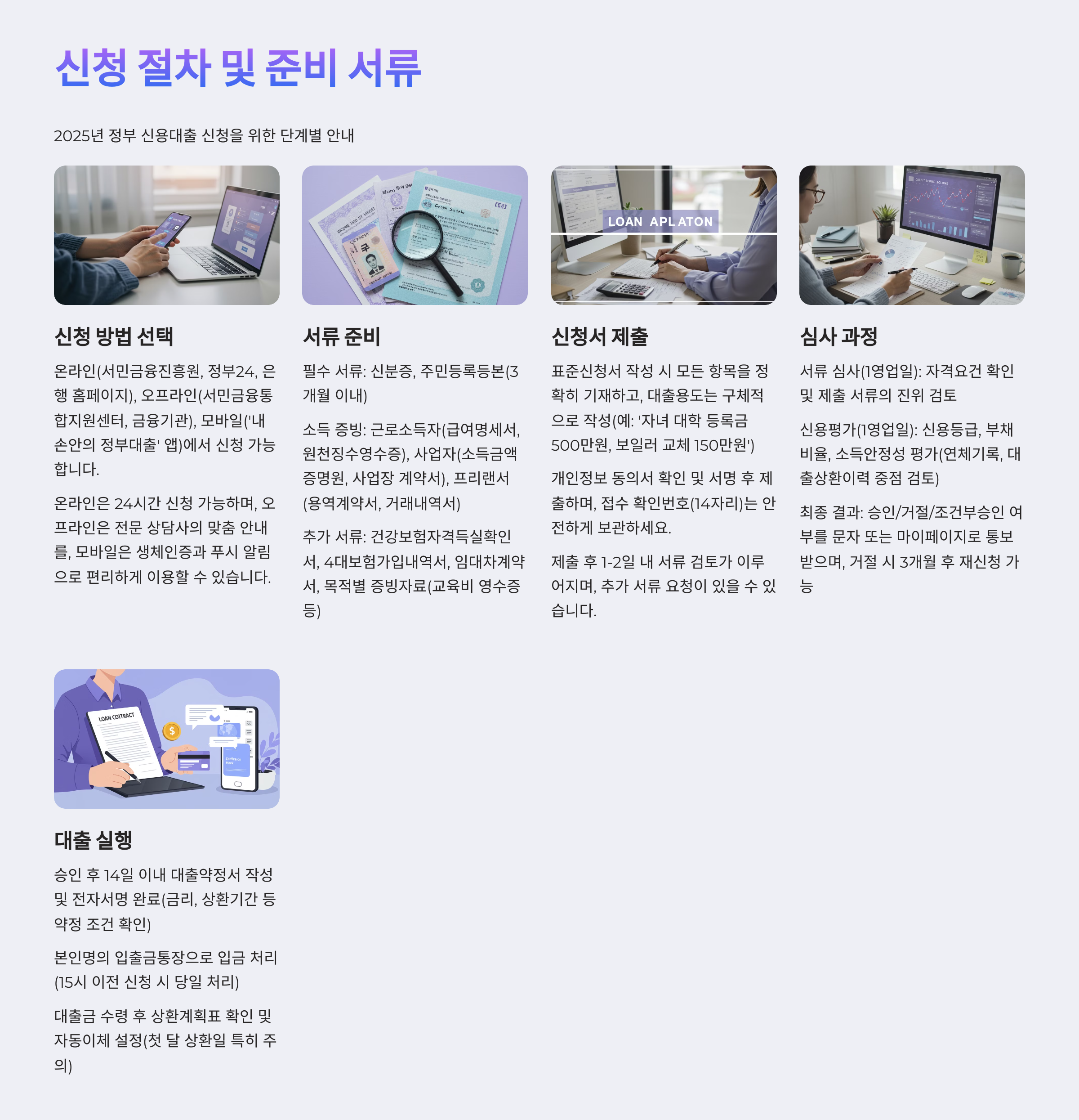- 온라인 신청: 서민금융진흥원, 정부 24, 각 금융기관 홈페이지