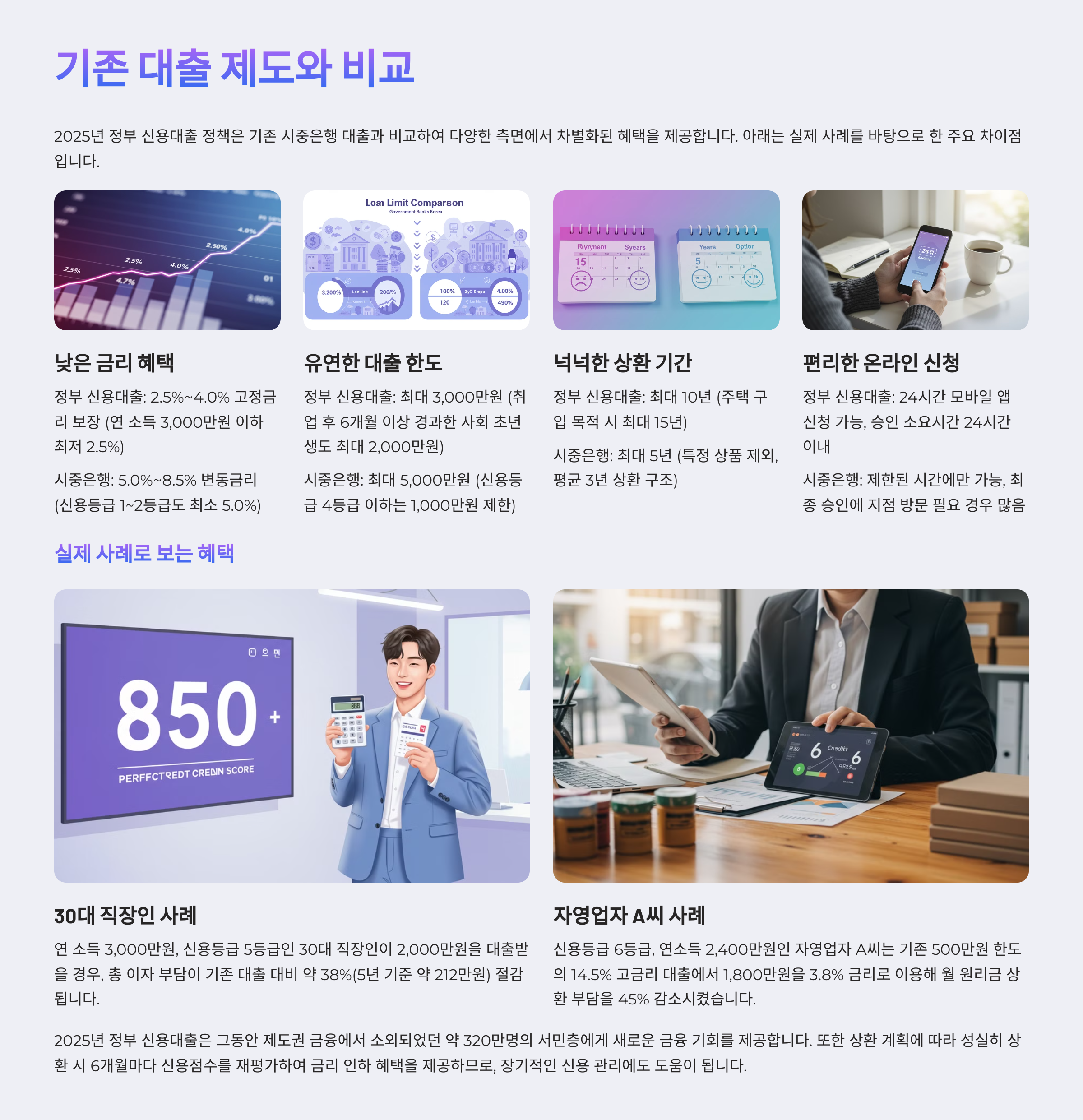 | 항목 | 2025년 정부 신용대출 | 기존 시중은행 대출 |