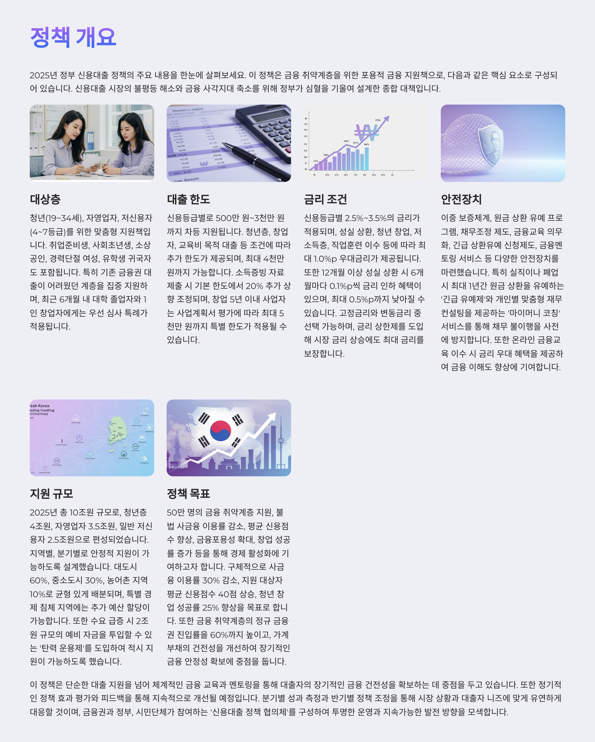 이번 정책은 특히 청년, 자영업자, 저신용자 등 금융 접근성이 낮은 계층을 중심으로 다양한 혜택을 제공합니다.