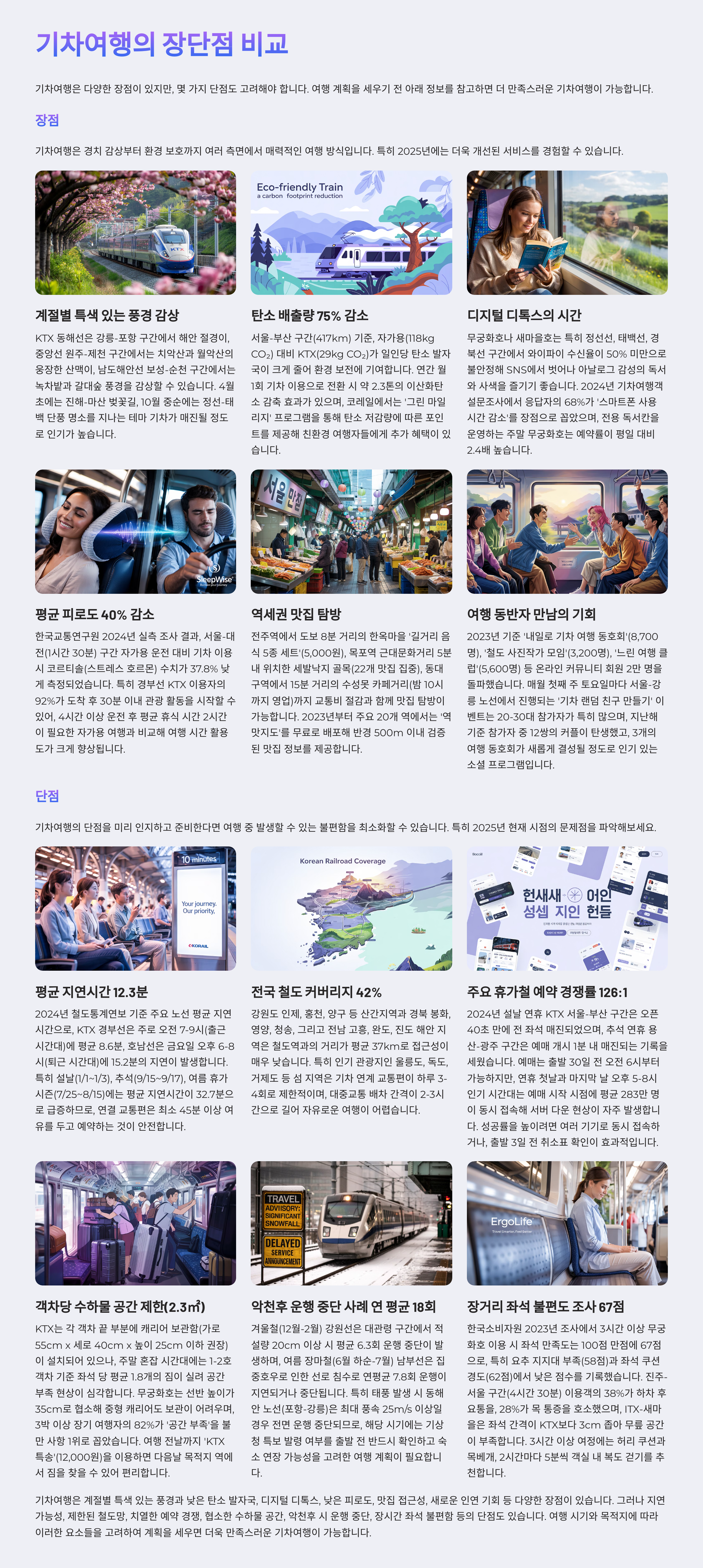 | 기차 안에서의 여유로운 시간 | 좌석 예약 경쟁 치열할 수 있음 |