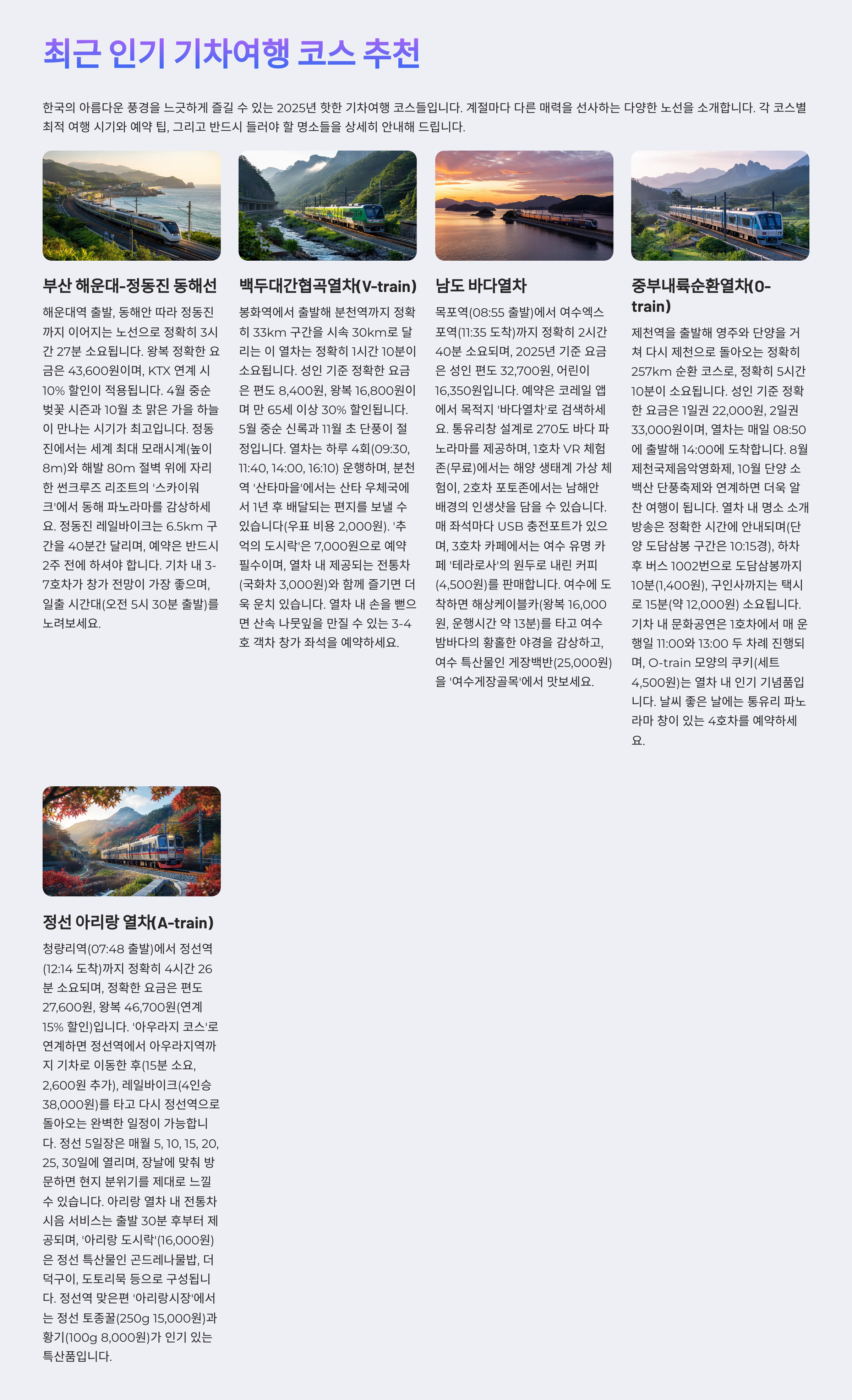 2025년 지금 가장 핫한 기차여행 코스 총정리 🚄