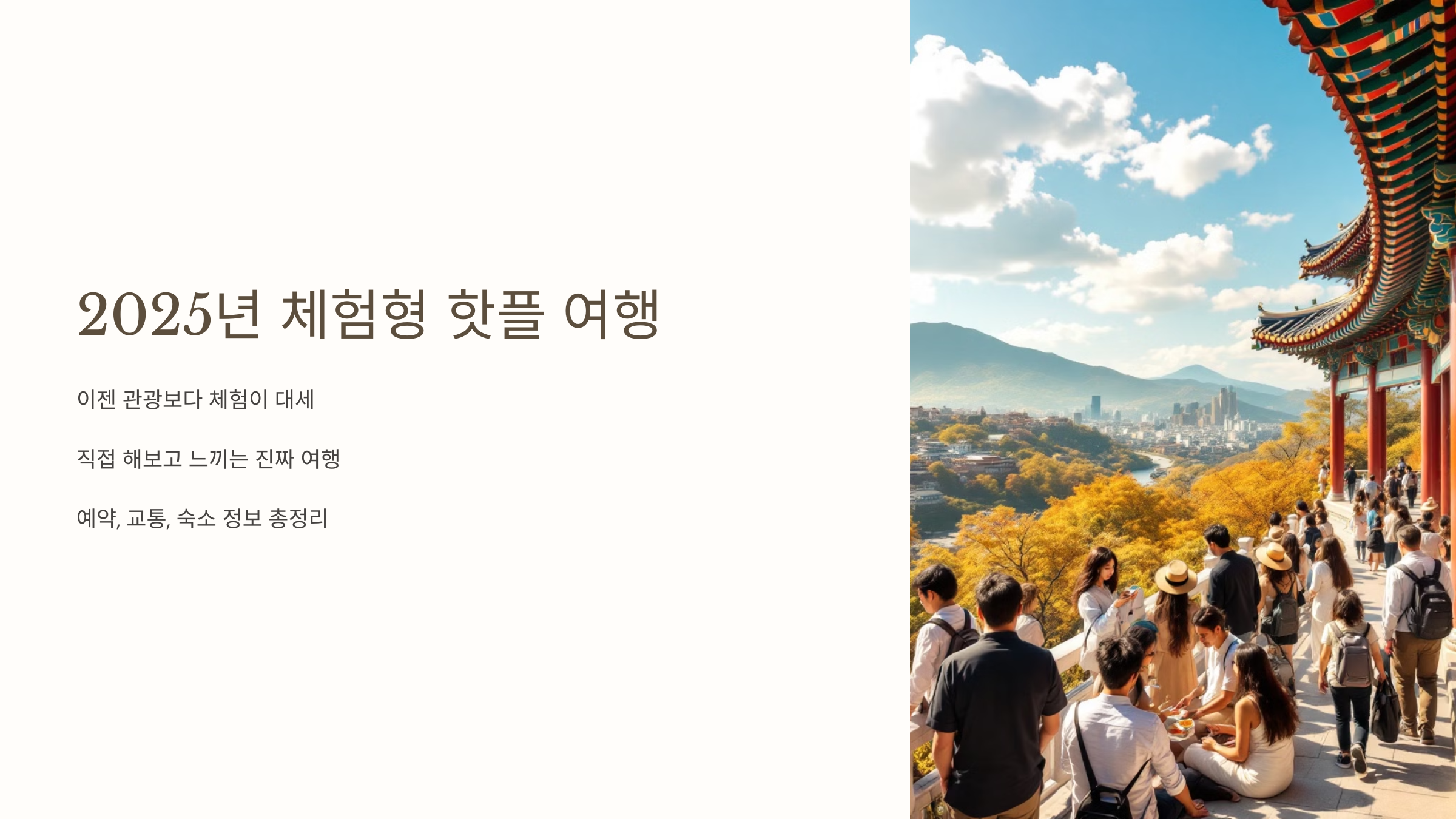2025년, 이젠 관광보다 체험이다! 지금 대한민국에서 가장 뜨겁게 떠오르는 체험형 여행지들, 알고 계신가요?