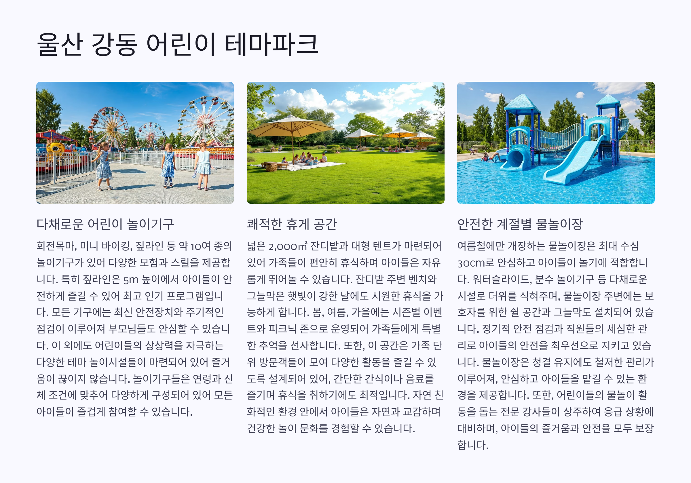 - 계절별 물놀이 존 운영 (여름 인기 폭발!)