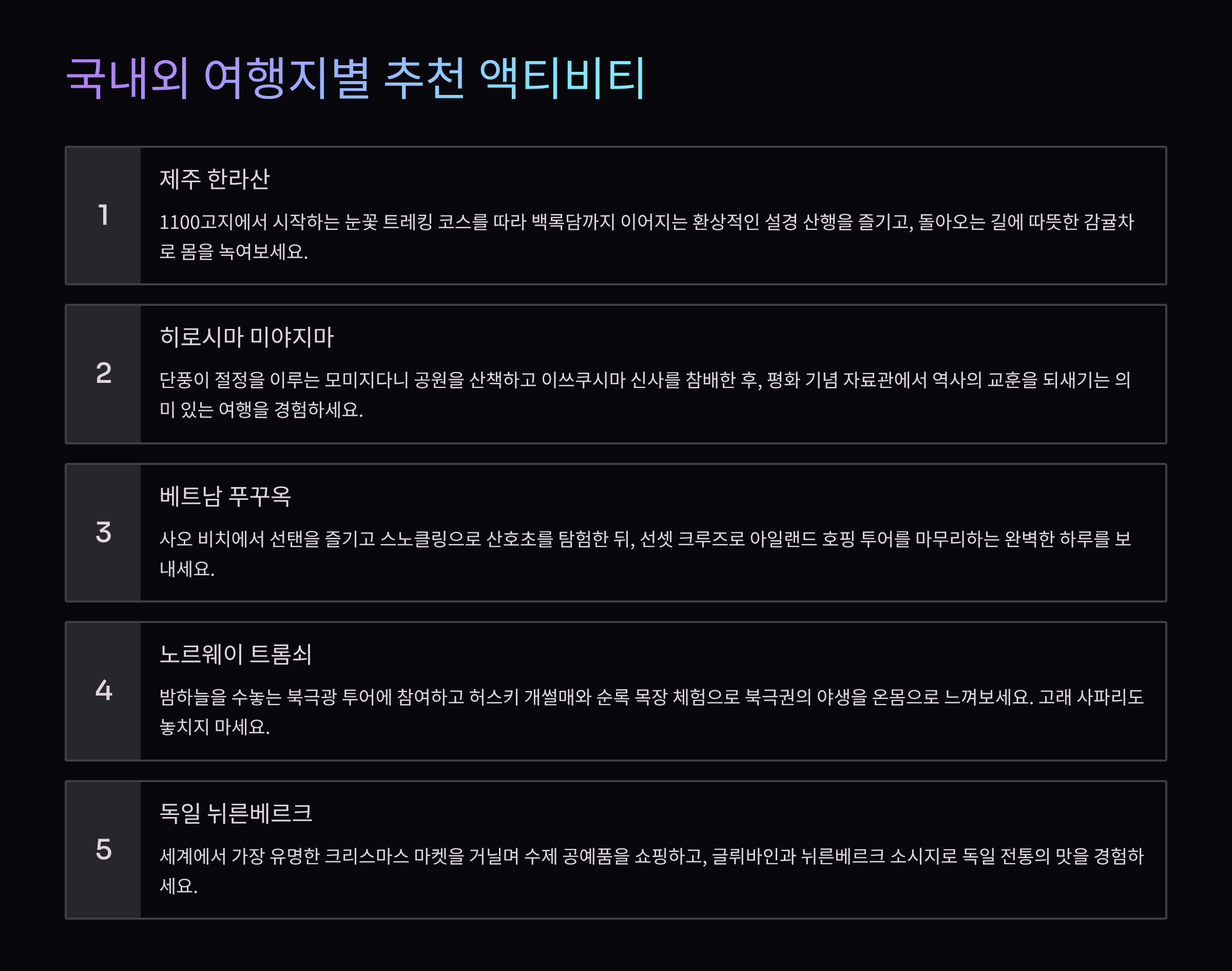 2025년 11월·12월 꼭 가봐야 할 여행지 추천