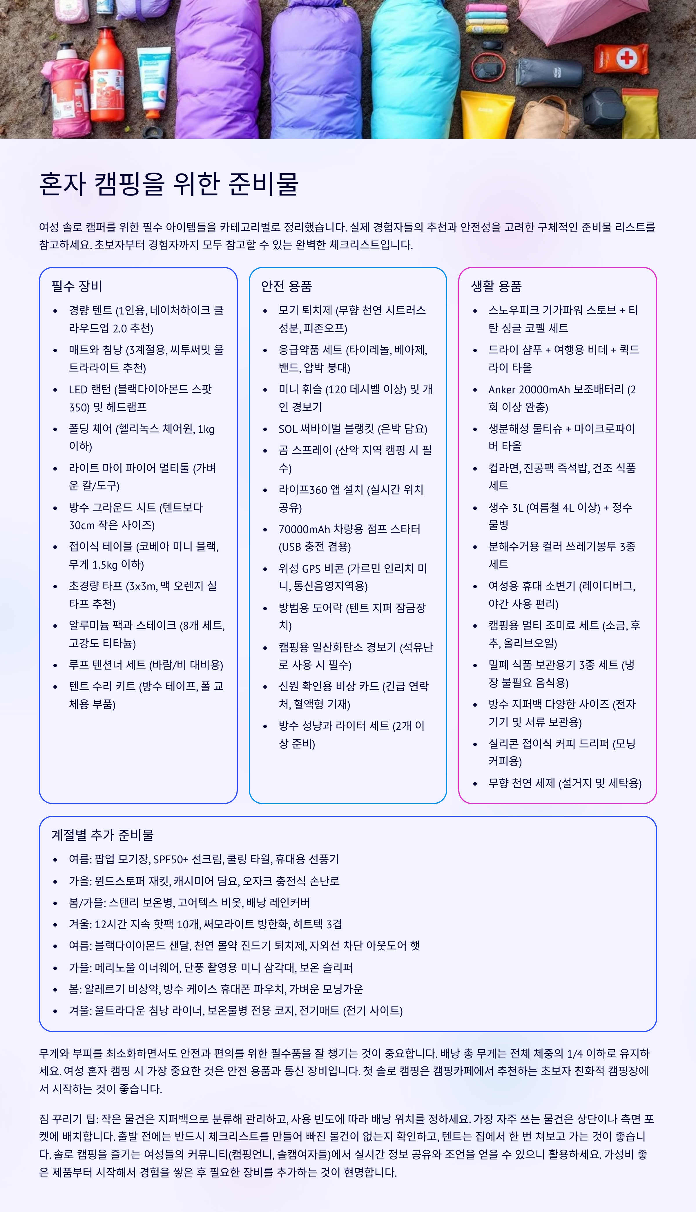 여성 혼자 캠핑할 때 꼭 챙겨야 할 물품은?