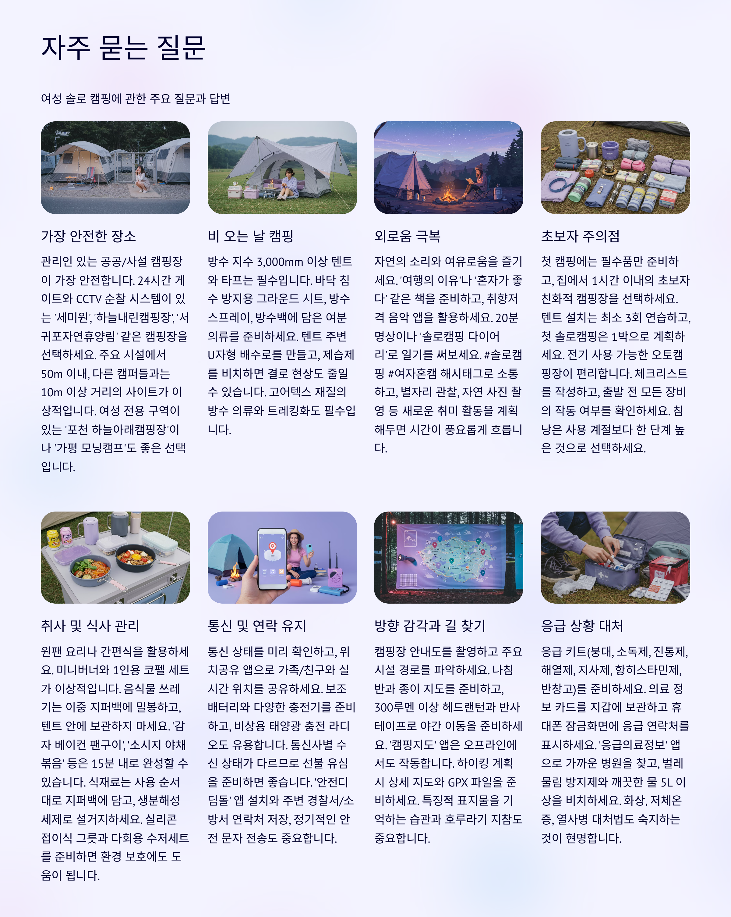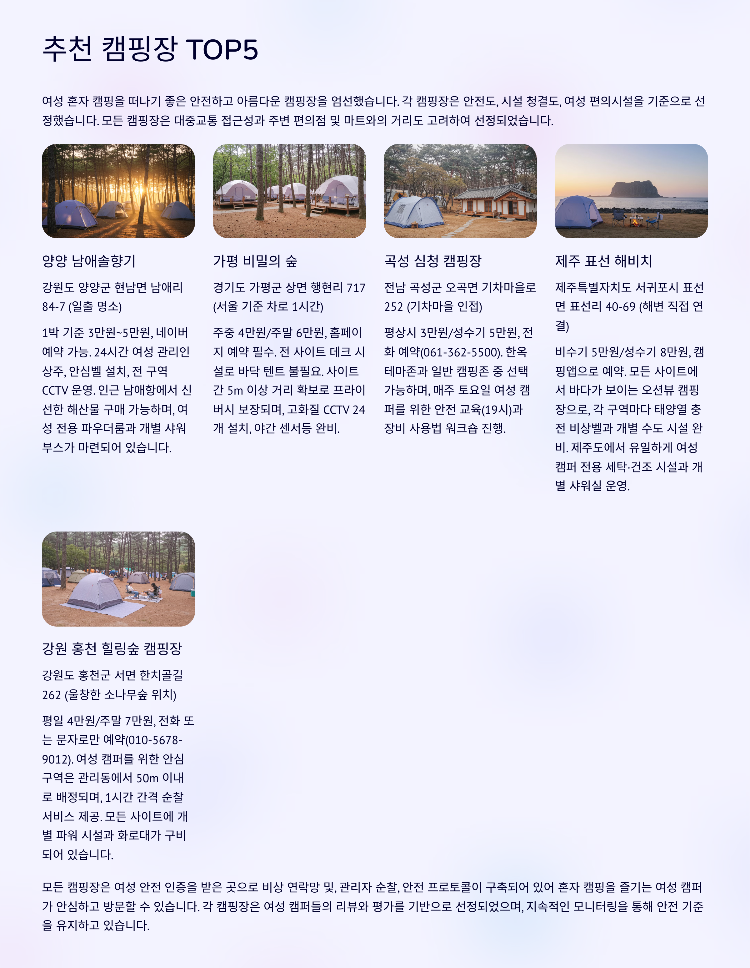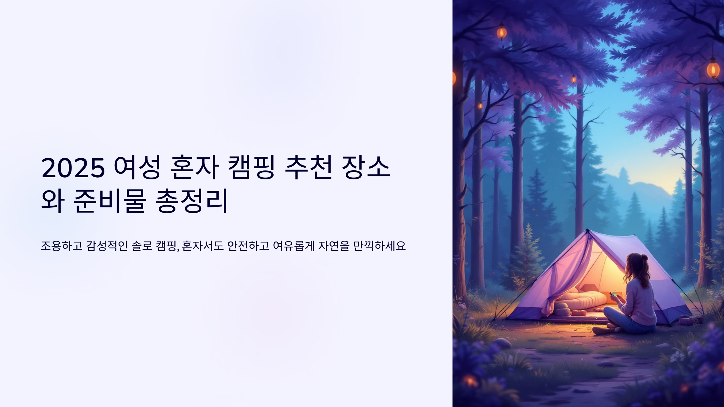2025 여성 혼자 캠핑 추천 장소 TOP5