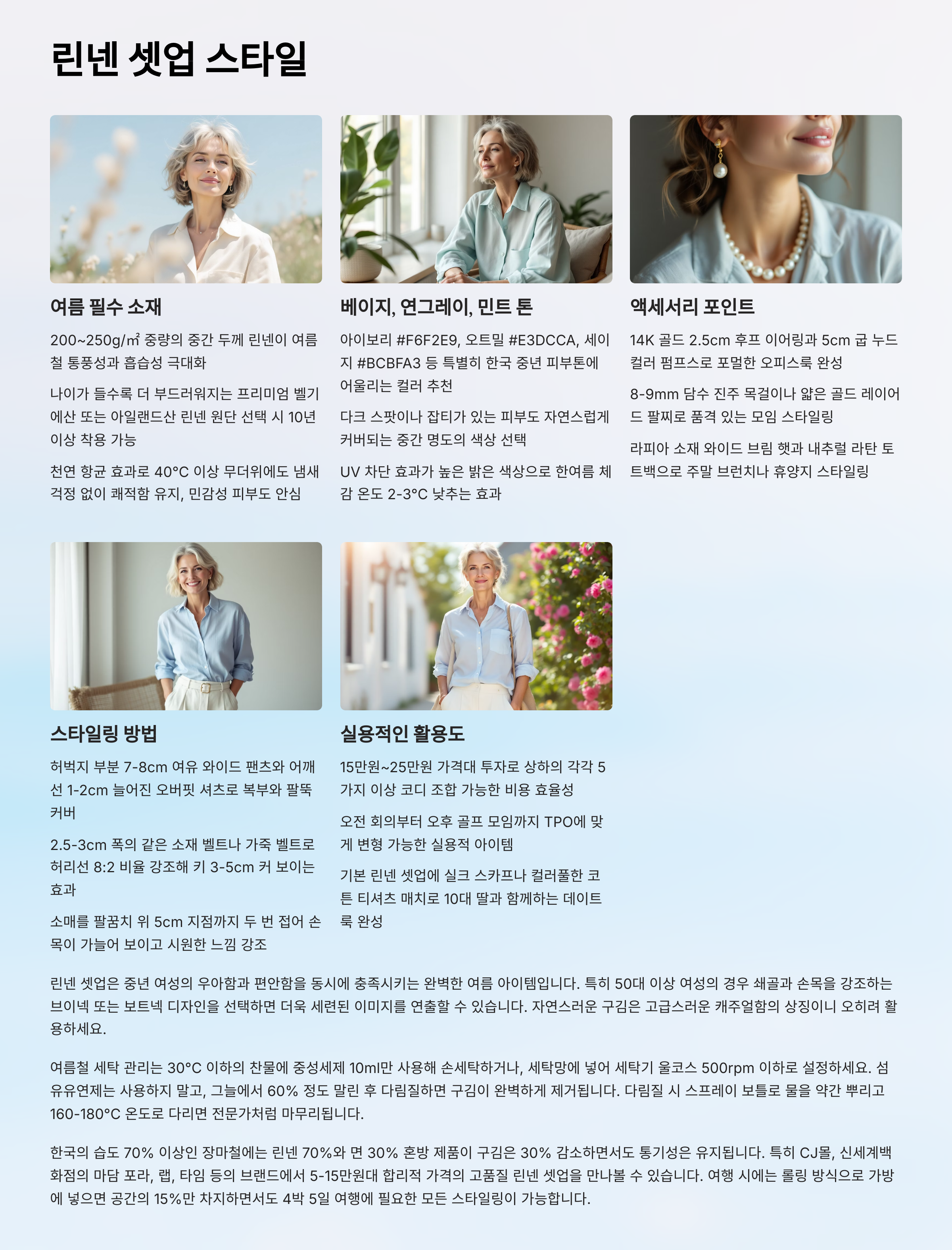 1. 리넨 셋업 스타일 – 여름 필수템으로 우아하게