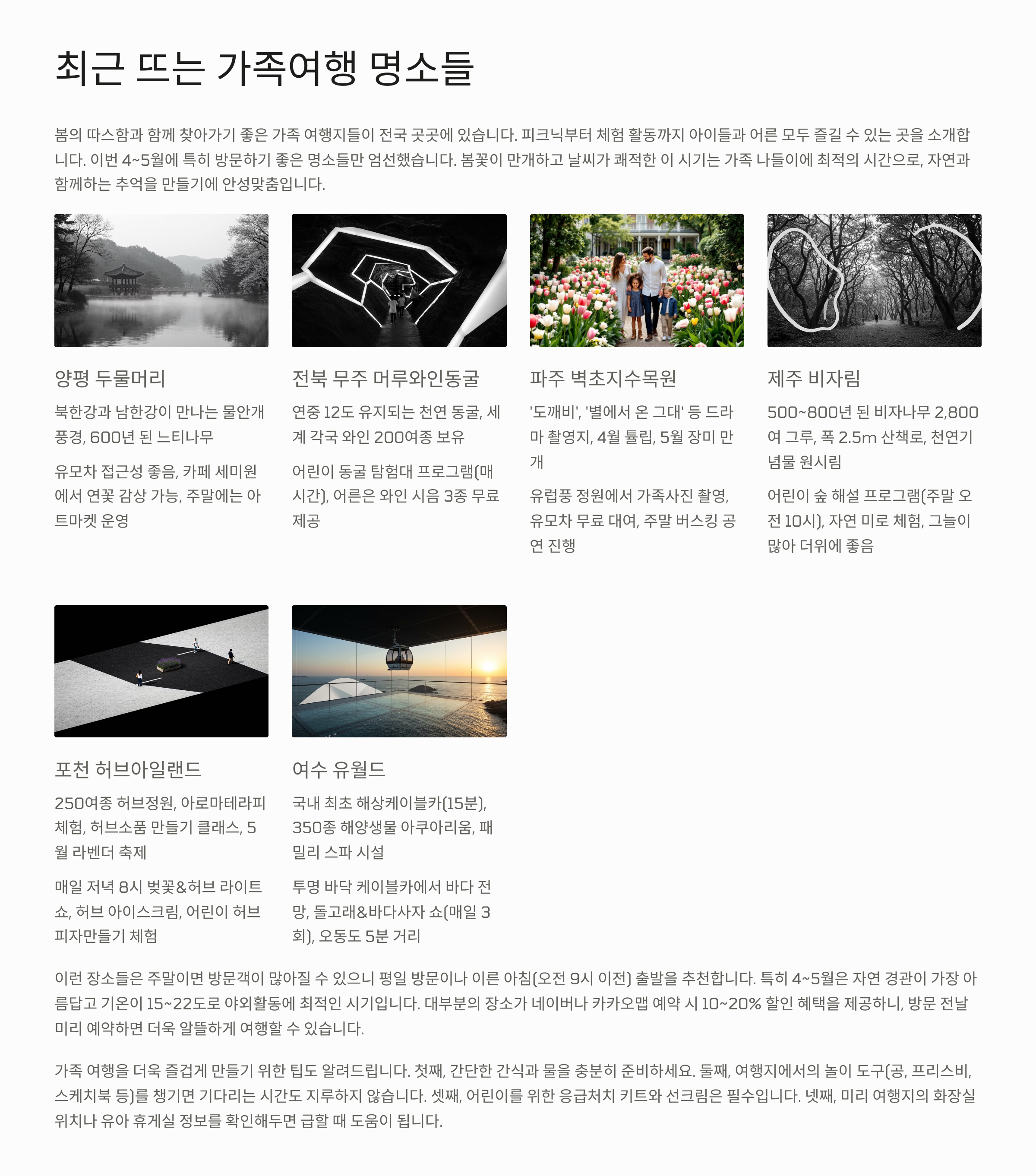 최근 SNS에서 조용히 인기를 끌고 있는 가족 여행지들도 소개할게요. 인스타그램에서 #가족여행, #오붓한 여행 해시태그로 떠오르는 핫플들은 주로 아래처럼 구성되어 있어요.