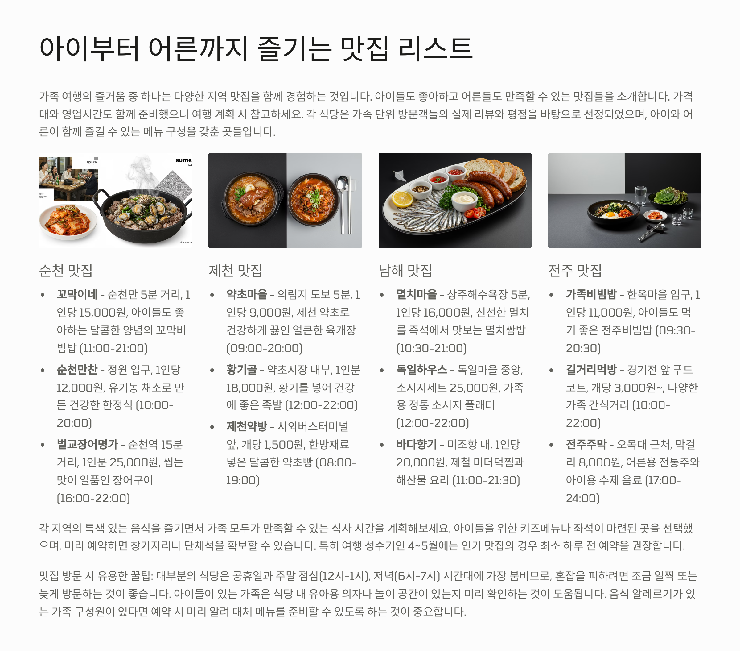 음식은 여행의 꽃이죠. 가족 모두가 즐길 수 있는 메뉴, 그리고 줄 안 서도 되는 숨겨진 맛집을 아는 것이 핵심이에요.