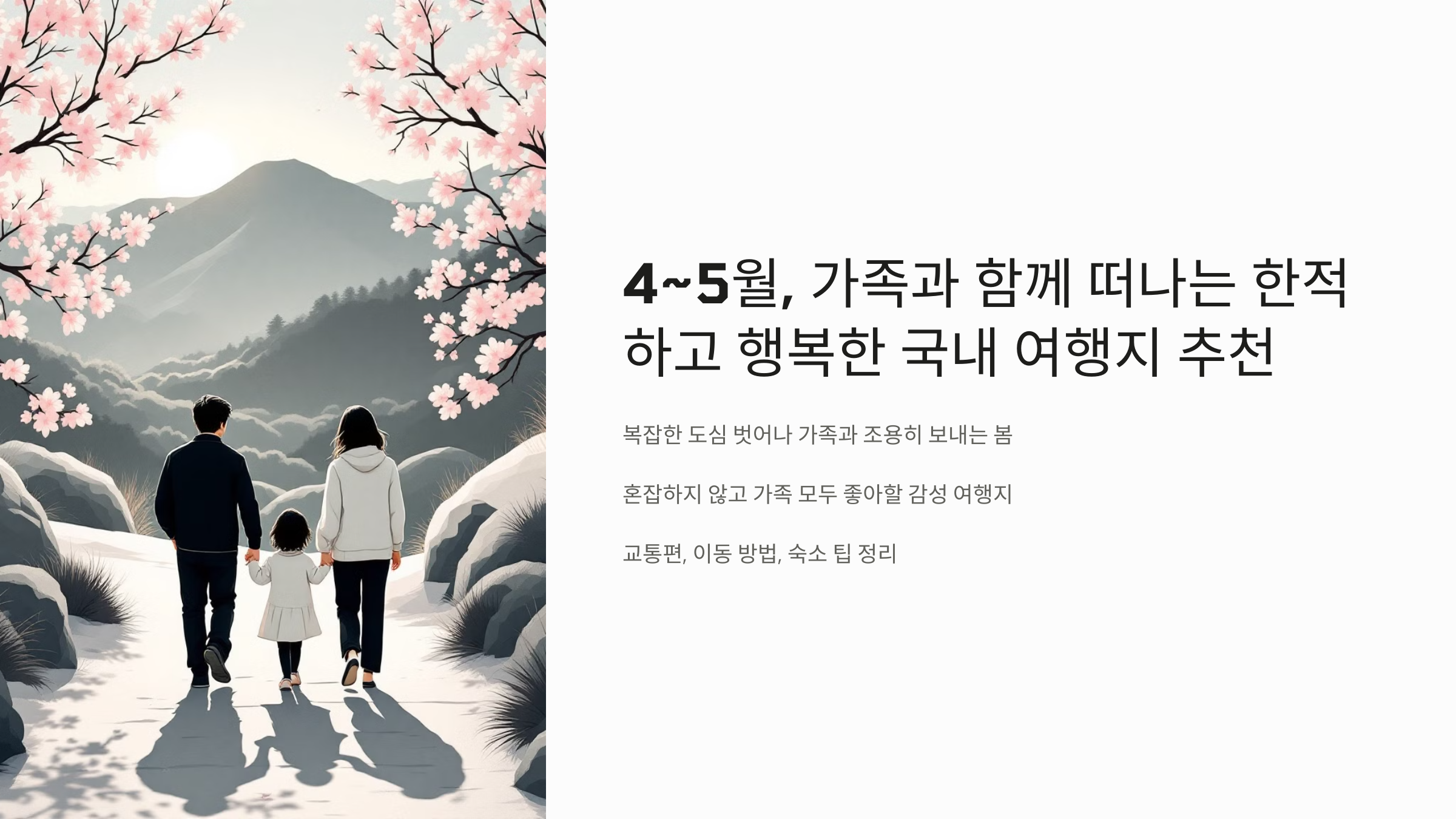 여러분도 이번 4~5월에는 복잡함 내려놓고, 단순하지만 따뜻한 가족만의 조용한 여행을 꼭 떠나보시길 추천드려요.